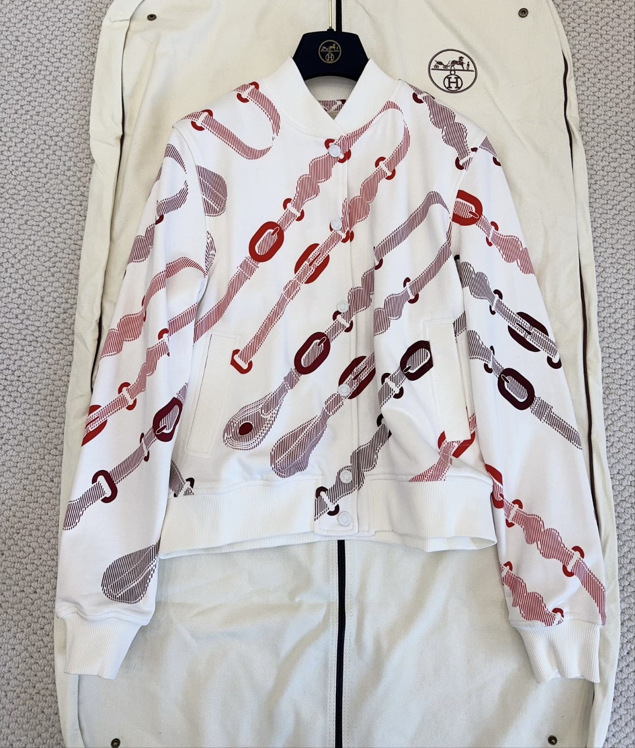 Hermes 2025 신상 체인 프린트 재킷 위치 프린트, 핑크 계열의 젊은 연령대 재킷 재킷의 달콤하고 스포티한 스타일 메탈 폼 맞춤 제작, 고급스러움 가득