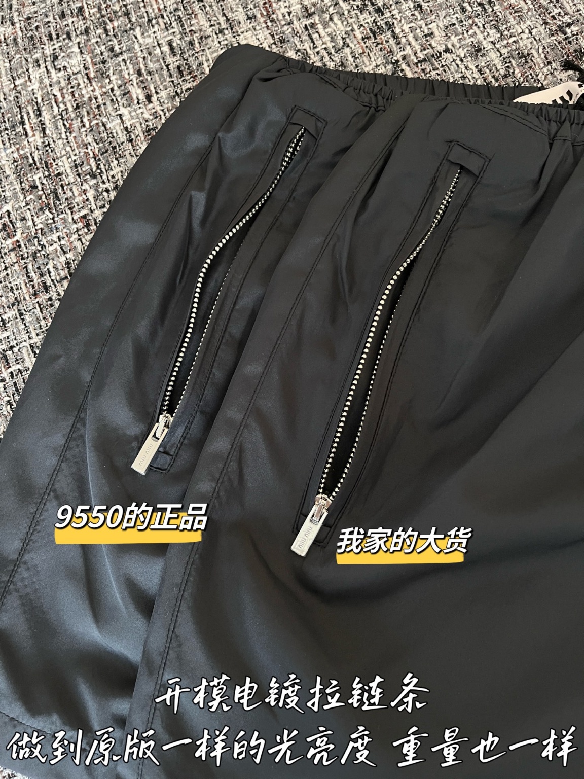 MiuMiu 25 이른 봄 반바지 ZP9550 구매 분해 제작 주문 제작 염색 삼방우븐 원단 실제 오리지널 주문 실을 사용하여 맞춤 출하 확대 디테일을 보면 환원도가 98 이상에 가까움 진짜 1:1 환원