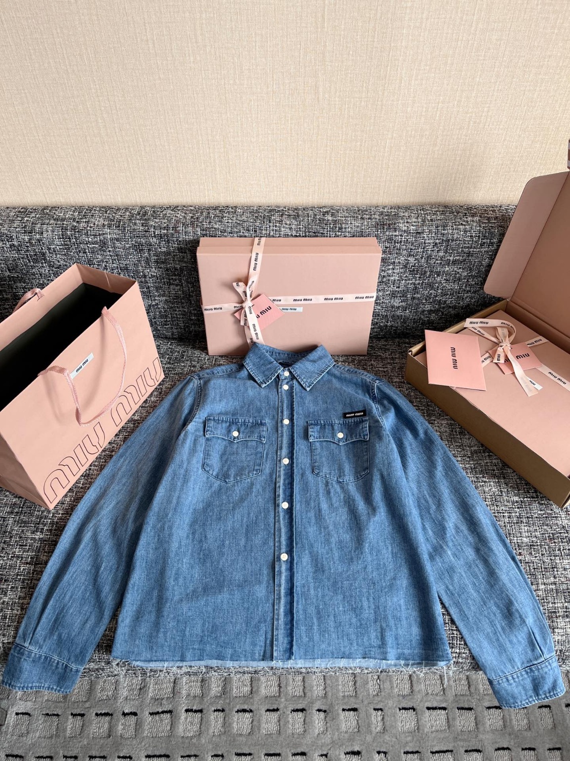 MiuMiu 25 이른 봄 데님 셔츠 ZP9500 구매 분해 제작 일본 타닌 원단 주문 제작, 실제 오리지널 주문 실을 사용하여 맞춤 출하 디테일을 98 이상 재현 진짜 1:1 환원