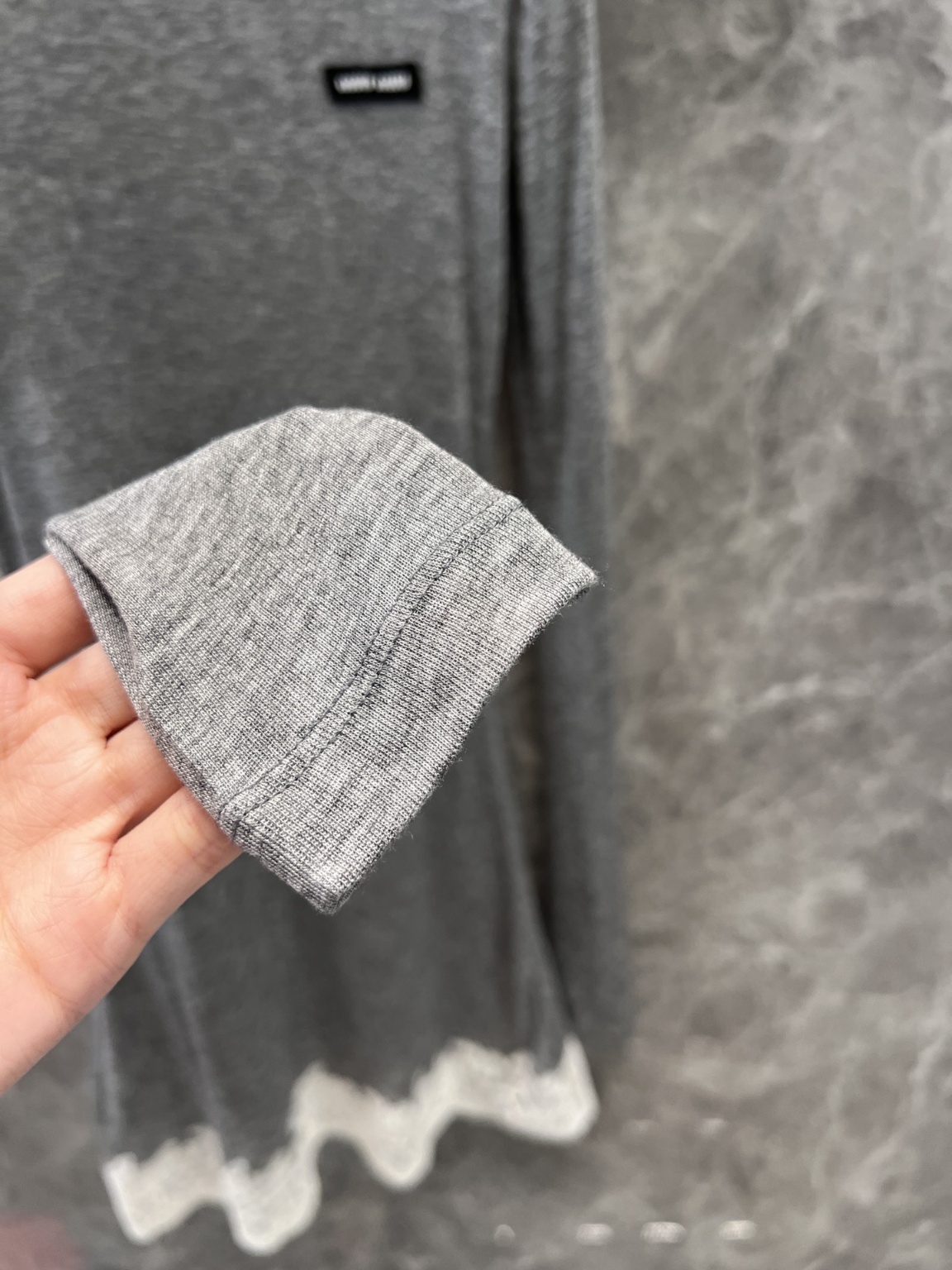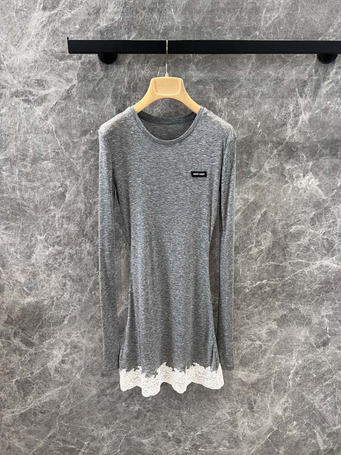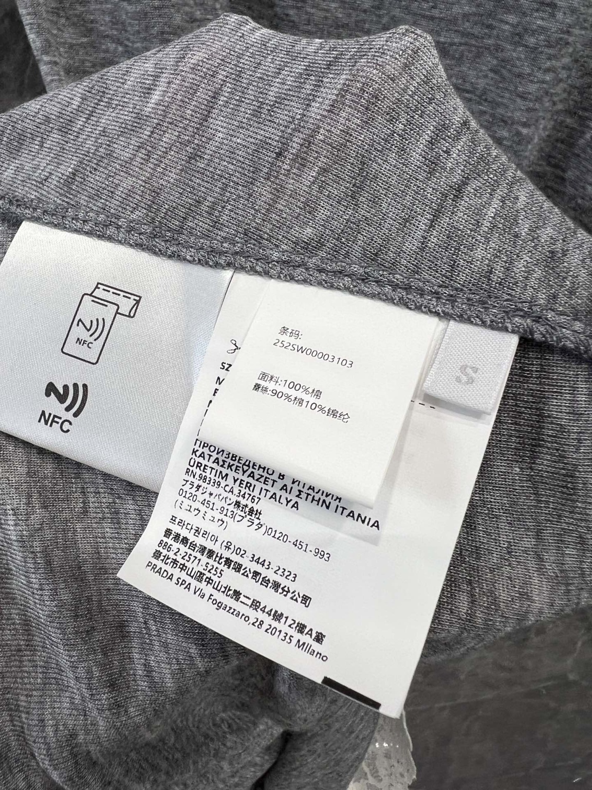 미우미우 25 신상 마이크로 로고 레이스 패치 긴팔 미디엄 티셔츠 커스텀 원단으로 부드럽고 편안하며 클래식 브랜드 로고 패치 포인트 이너 레이어드 또는 단품으로 착용 가능