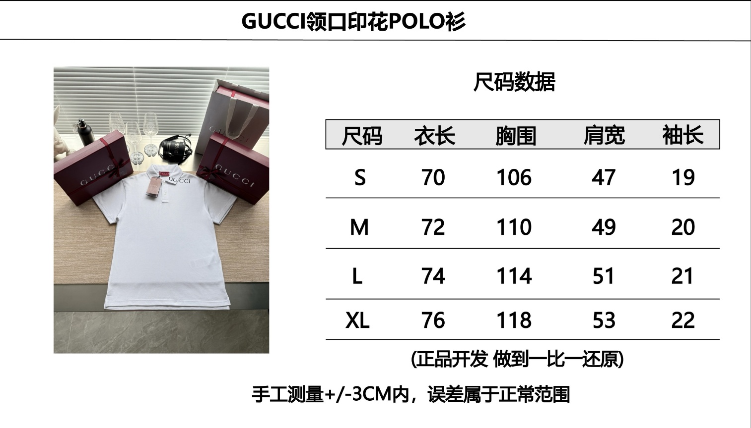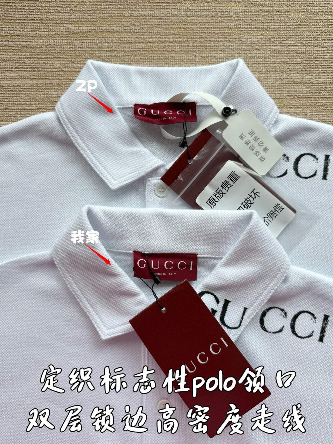 구찌 25ss 목선 프린팅 폴로 셔츠 ZP6800 구매 분해 제작 화이트 피케 원단 맞춤 제작, 100% 면 수입 실 제작 목선 포인트 구찌 알파벳 로고 프린팅 디자인 오픈 몰드 맞춤 레터링 로고 4중 버튼 로고 시보리 폴로 넥 소매 밑단 맞춤 제작, 전용 라이더 라인 진정한 1:1 최고급