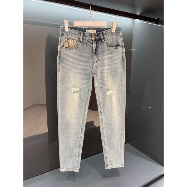 디올 디스트로이드 데님 팬츠 25 신상 무역채널 공장 상품, 빈티지 워싱 무적의 커팅 디자인 일본 데님 저지 데님 원단 펄프 염색 공법으로 제작 능직 배아는 수축 방지 및 정리 후 수축률이 일반 청바지보다 낮고 질감이 더 조밀하고 두꺼우며 짜임이 선명함 Selvedge 스티치 제작 전문으로 스티치를 이용해 덧대어 스티치를 하는 일련의 공정을 거쳤음 30사이즈 허리78 힙98 밑위26 밑단100 밑단14