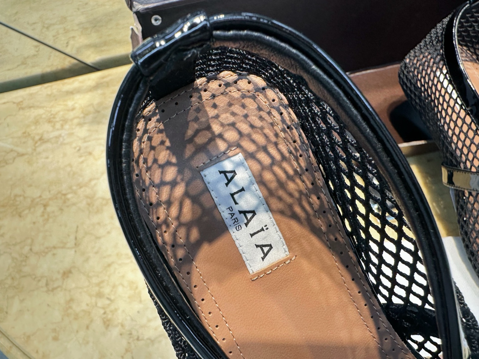 알라이아 그물 발레슈즈 부드러운 그물 소재가 가볍고 통기성 있는 착용감을 선사함 에나멜 소가죽 트리밍과 심플한 스트랩이 세련된 디테일을 더해줌 고무창은 미끄럼 방지로 편안함을 높여줌