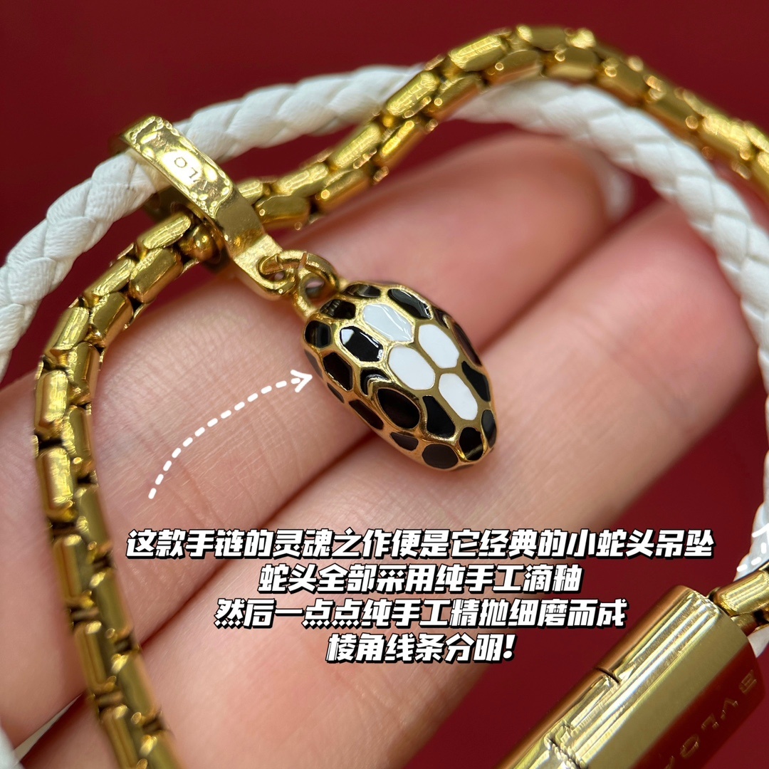 불가리 Serpenti Forever 가죽 팔찌 짜임 송아지 가죽과 스네이크 체인의 조화가 돋보이는 클래식한 스네이크 펜던트로 독특하고 눈길을 사로잡음 프리사이즈 18cm