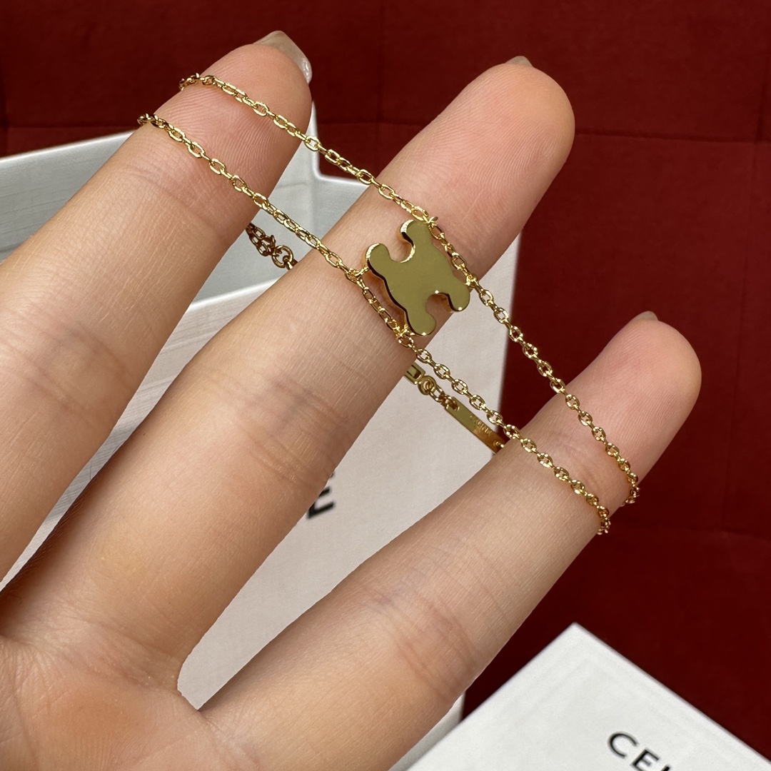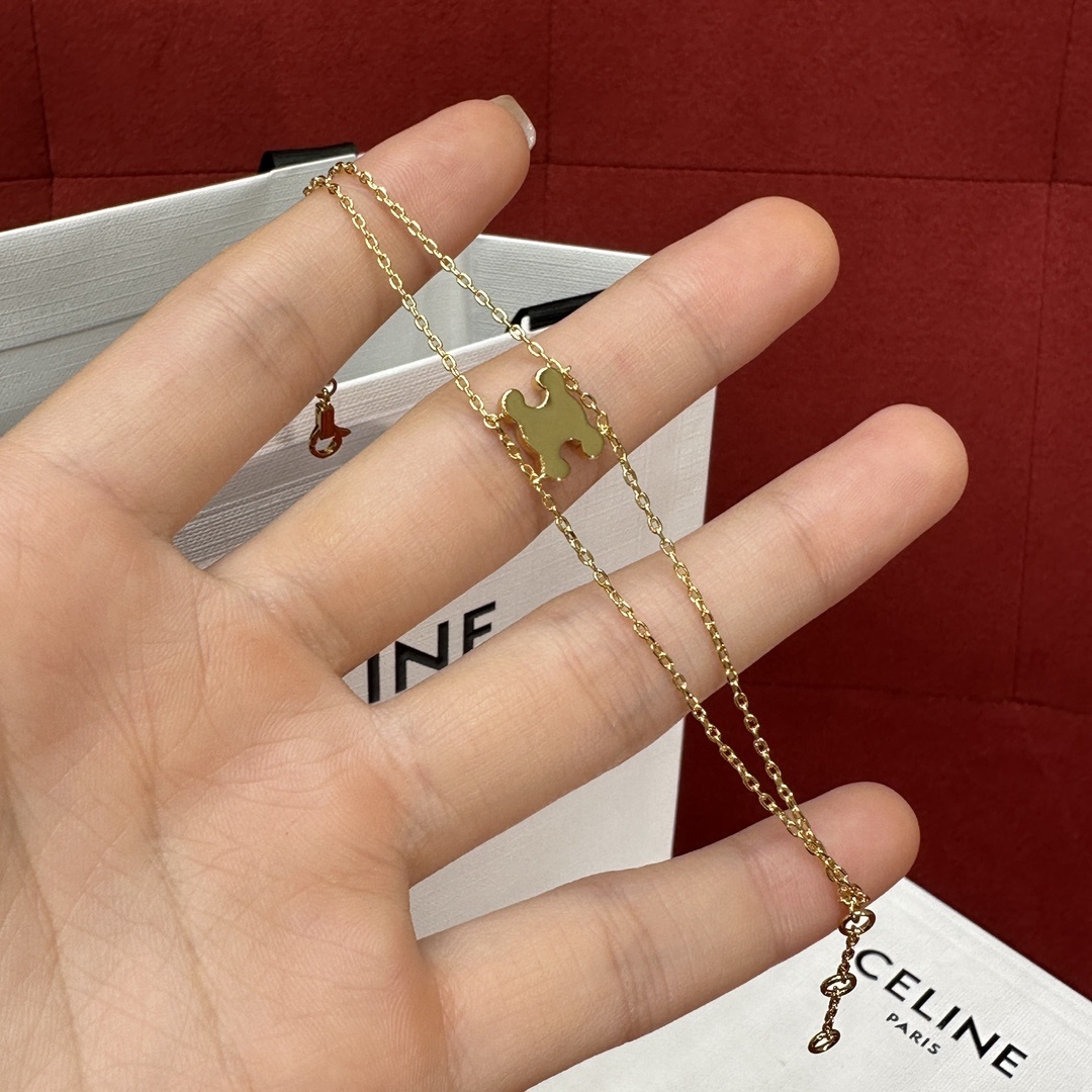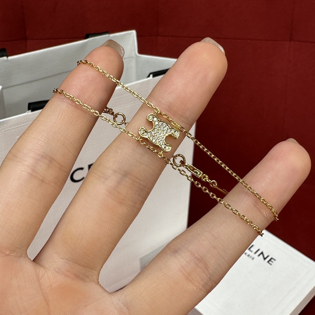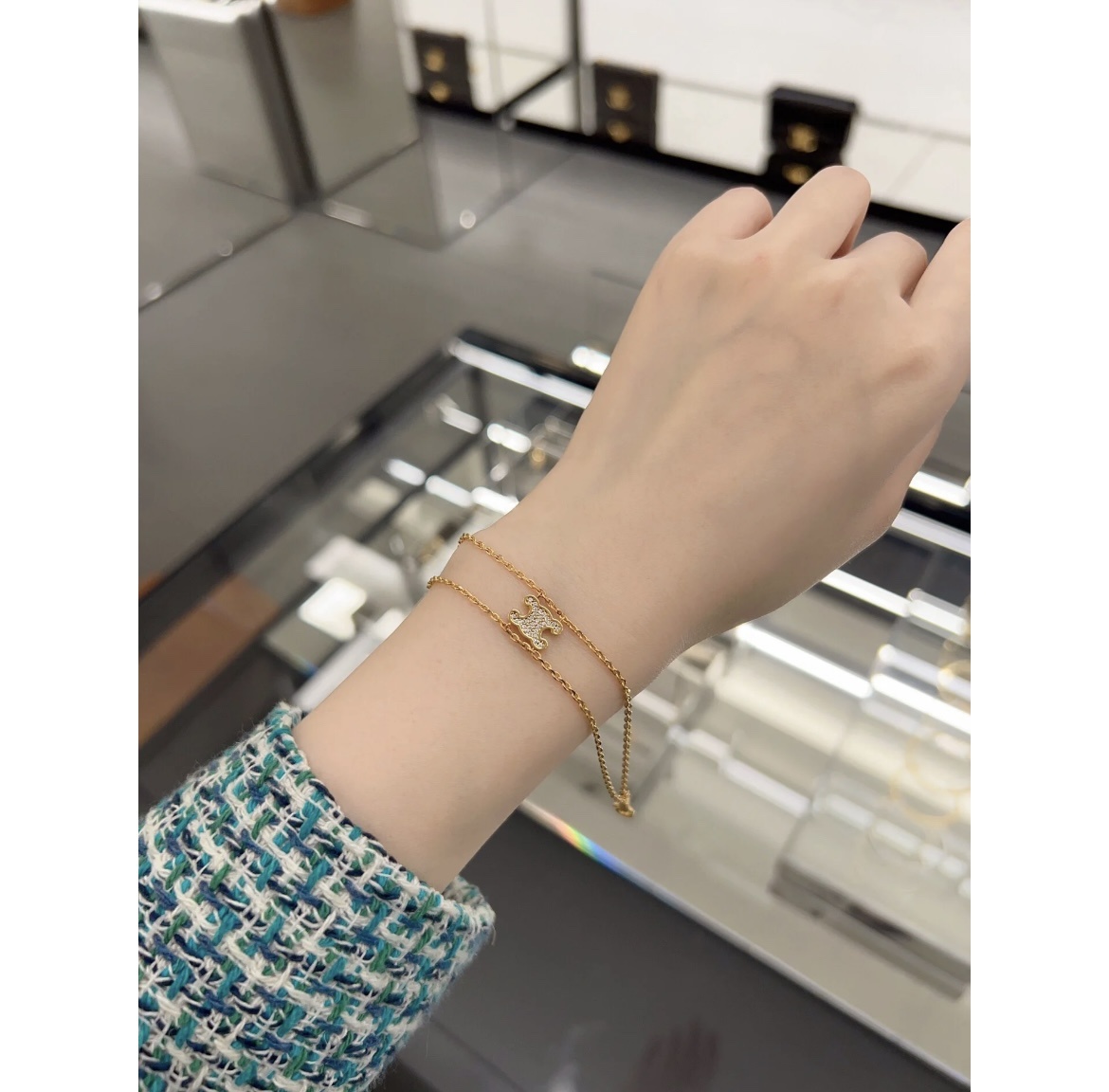 셀린느 더블 체인 개선문 팔찌 더블 체인 디자인으로 정교함 가운데는 큐빅이 돋보이는 개선문의 로고 날렵하게 반짝이며 로맨틱하고 정교함 (신주 소재 스와로브스키 스톤)
