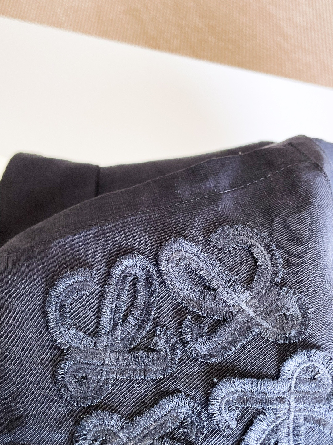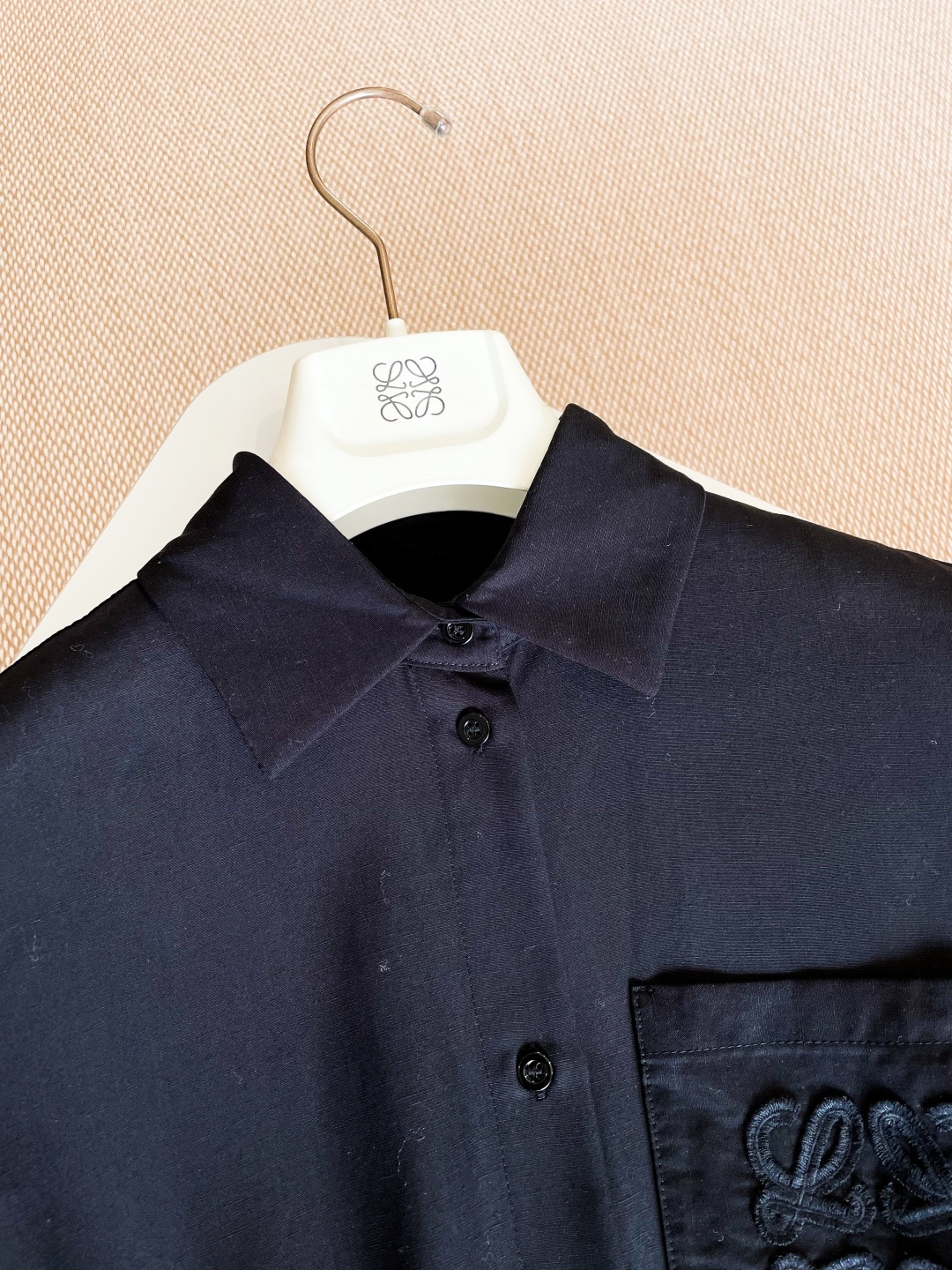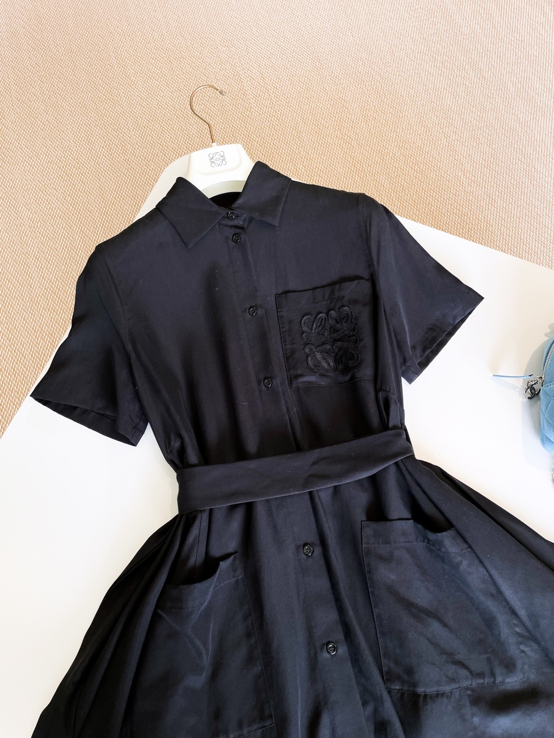 LOEWE 25SS 플라워자수 면 마 벨트 원피스 가슴패치 칼라와 소매에 TRIOMPHE 자수 입체 꽃무늬 프릴 클래식 핏 프릴 하이넥 주모 베버튼에 벨트 상체를 매치 세련되고 고급스러운 품질로 발매