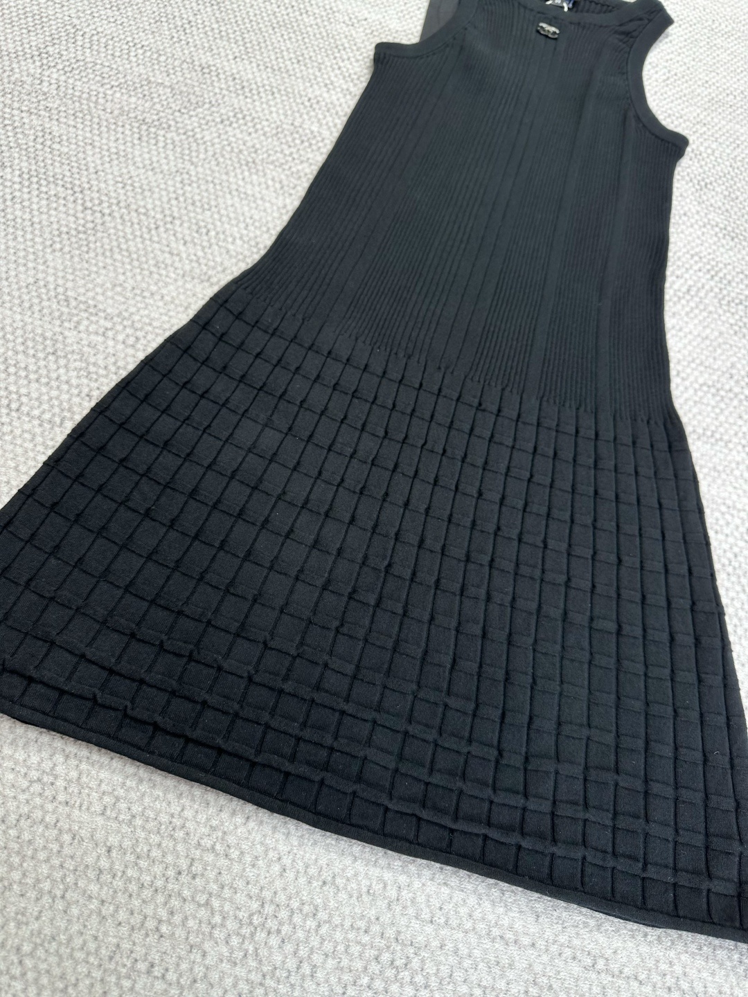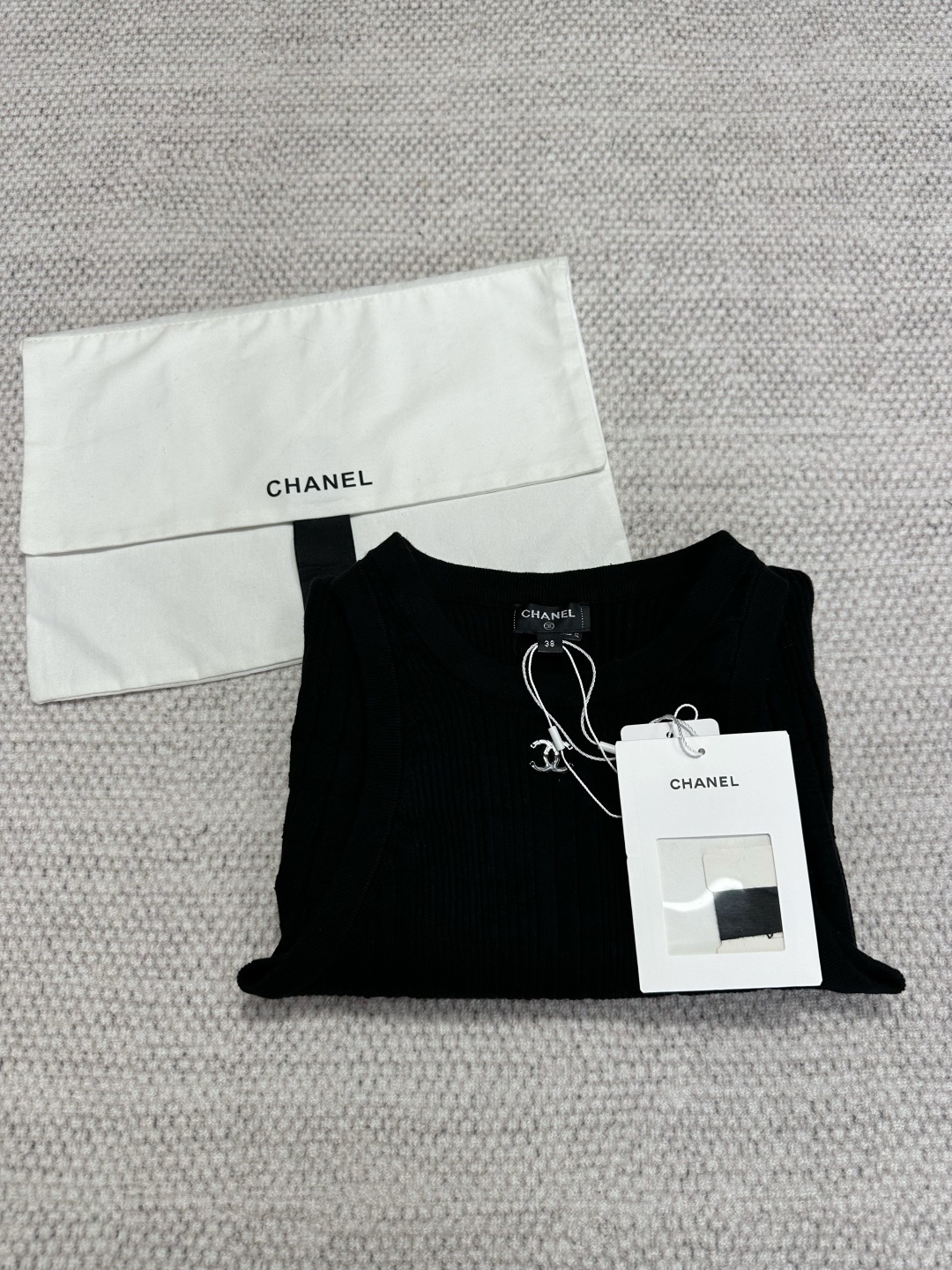 샤넬 25P 니트 조끼 원피스, ZP19500 원판 맞춤 초미세 빗면사, 빗면사는 일반 면사보다 비쌈 빗면 제작공정이 복잡하여 시간과 비용이 많이 소요되며 방직과정에서 빗질공정이 추가되어 면의 단섬유, 불순물, 매듭을 제거하여 원단을 더욱 매끄럽고 섬세하게 만들 수 있으며 내마모성, 보풀성, 주름방지성이 우수하고 흡습성과 통기성이 우수함 전체 옷은 일본 스마기의 18바늘로 짠 것