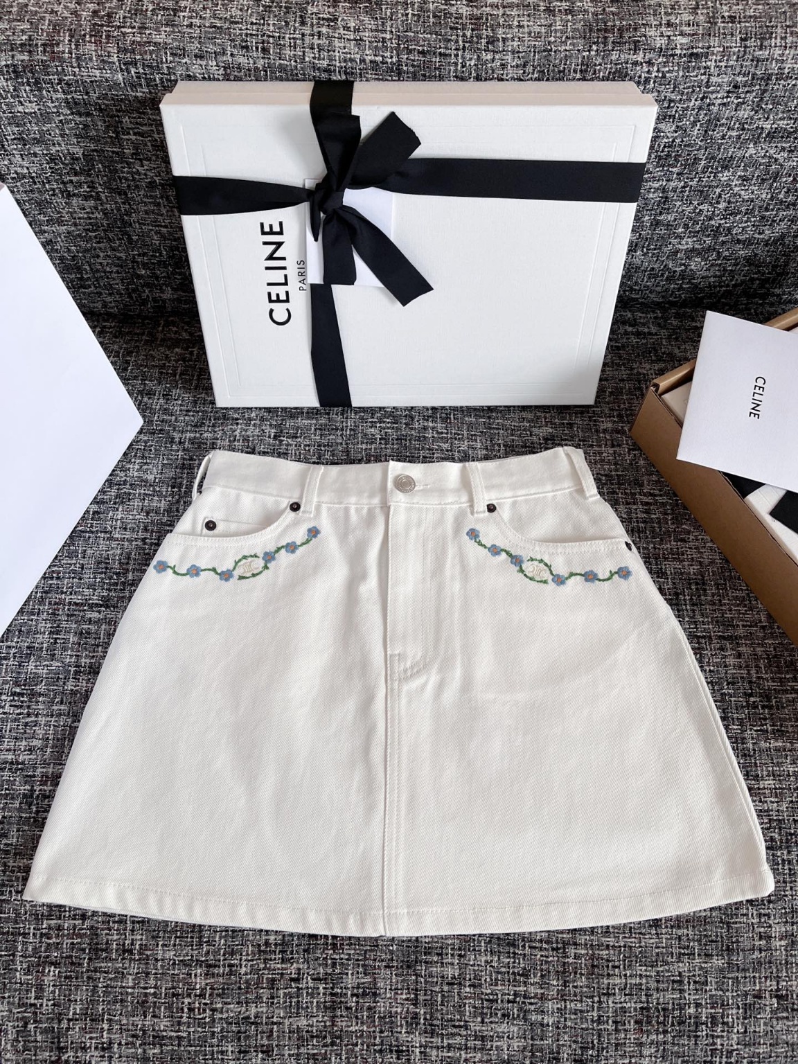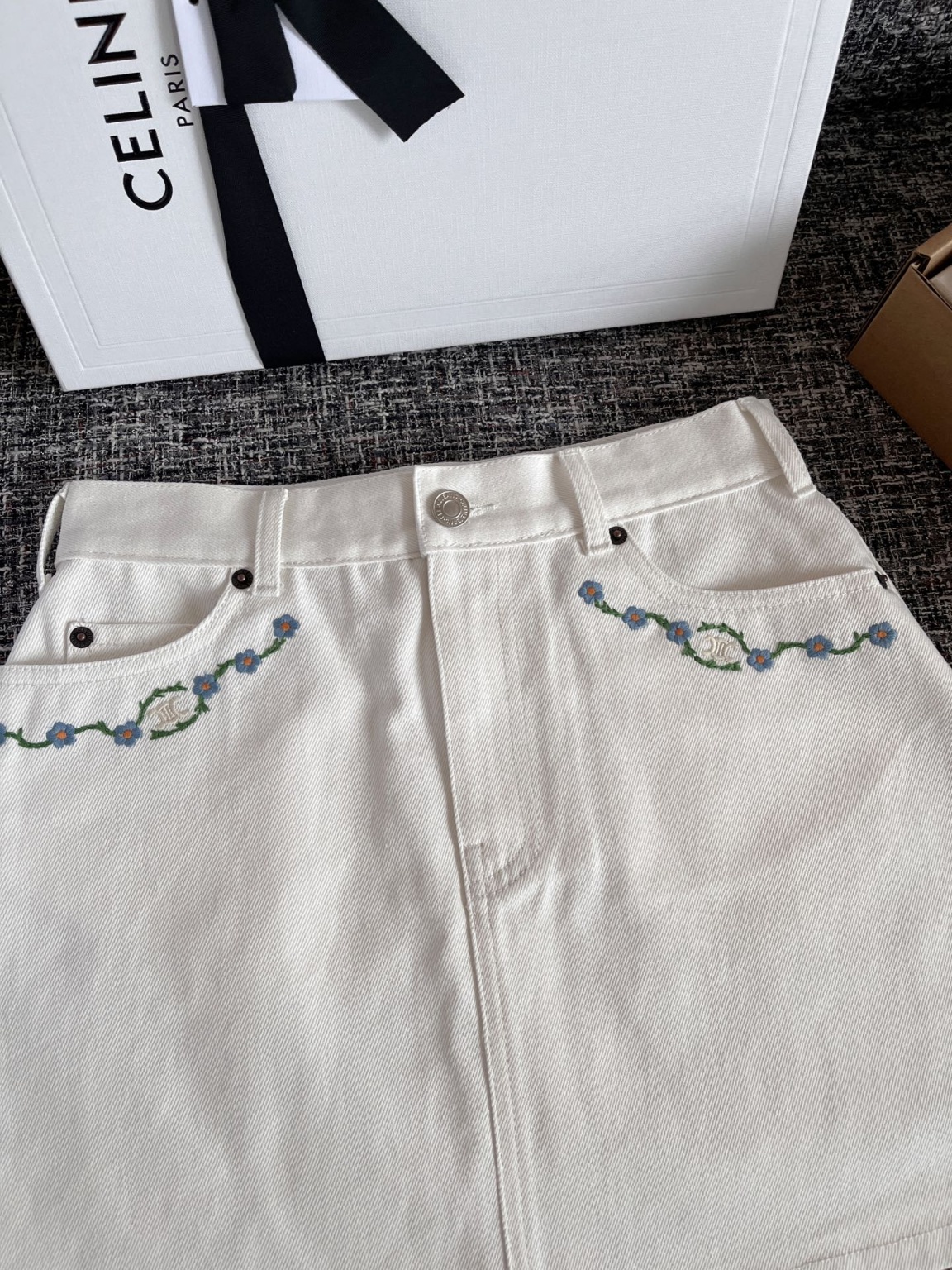 셀린느 25 이른 봄 작은 블루 플라워 포켓 스커트 ZP8900 구매 분해 제작 일본 타닌 데님 소재 주문 제작 실제 100% 순면 실 짜임으로 맞춤 출하 디테일이 98 이상, 실제 1:1 환원