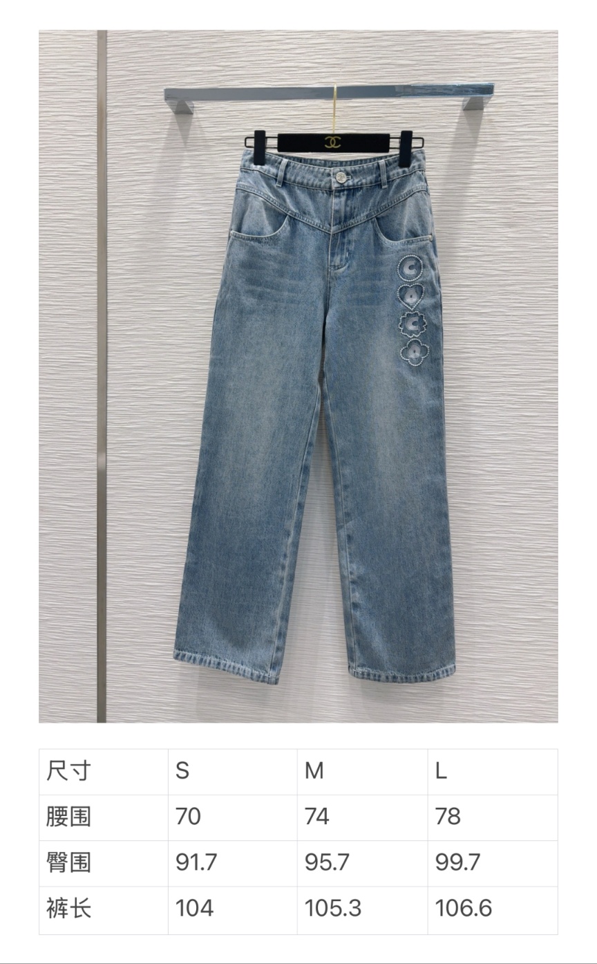 샤넬 2025 시즌 신상품 빈티지한 느낌의 데님팬츠 하이비주얼 풀라인으로 고민없이 깔끔한 느낌 필수템 촉감이 좋은 워싱데님 면, 구제 효모 스타일링