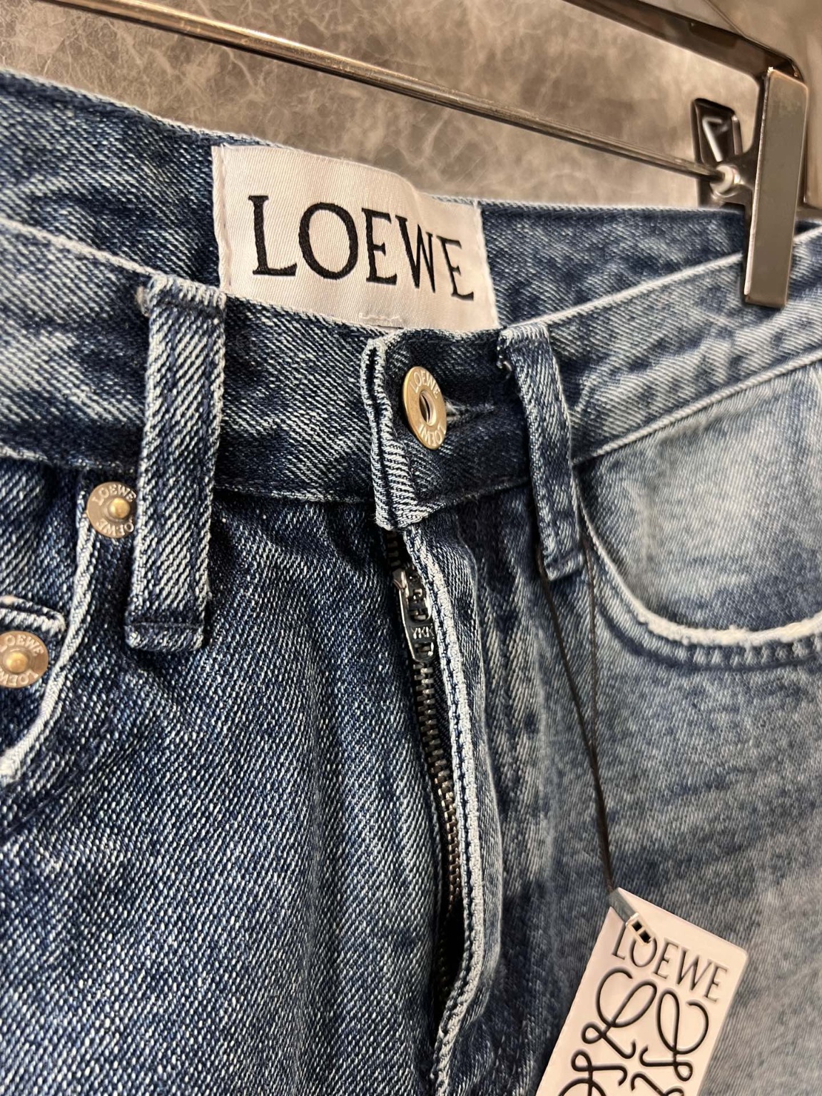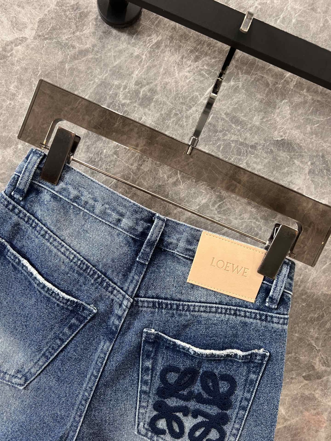 로에베 25 봄여름 신상 빈티지 퍼 워싱 데님 숏 팬츠 중공업 입체 칫솔 자수 로고 포켓 수입 데님 액티브 워싱 효과 최고 클래식한 하이웨스트핏으로 스타일리쉬하게 연출 분위기 있는 아이템
