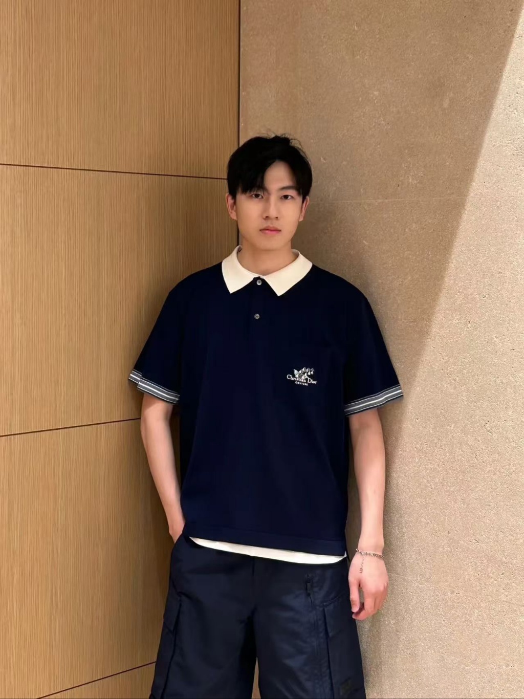 디올 인디고 자수 저지 폴로 티셔츠 오리지널 15500 구입, 정염 40수 정소면사 이중사 수입(Stoll) 14니트기 사용, 특수기 모직자카드 사용 의류 후 모직 발효 세탁, 수입 자수 기계 작업