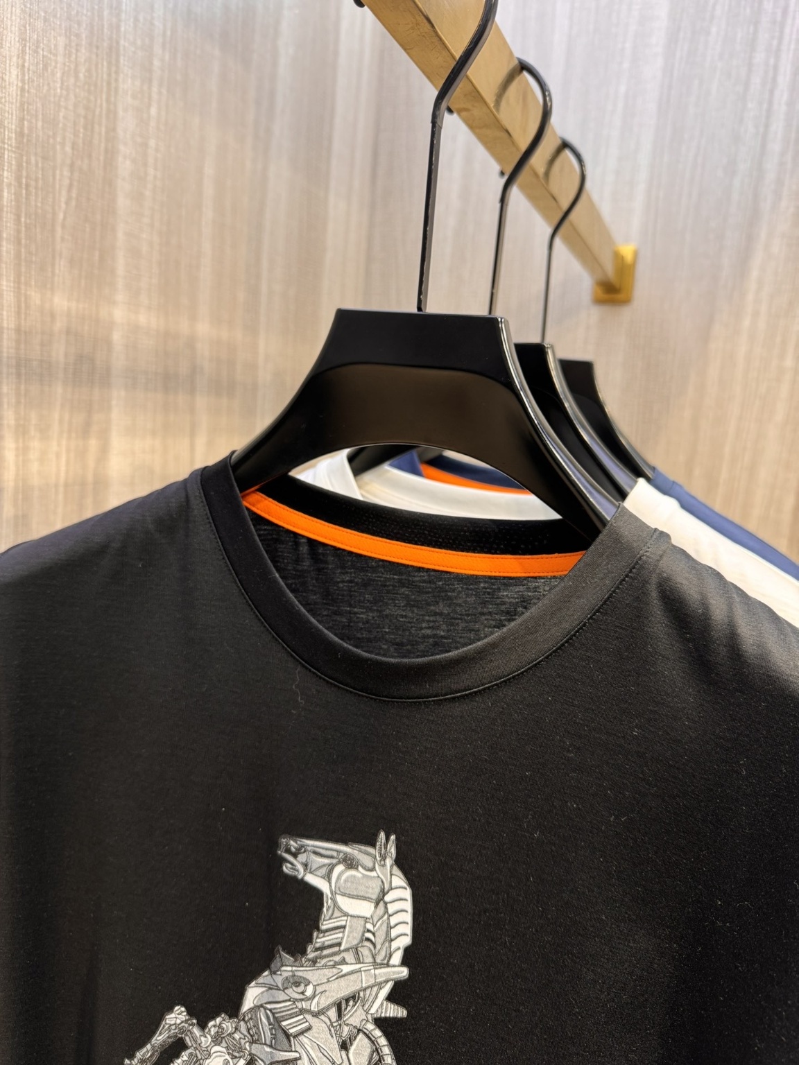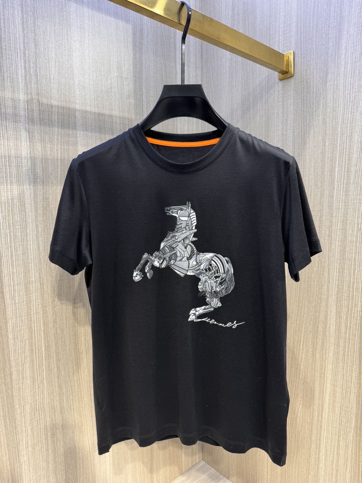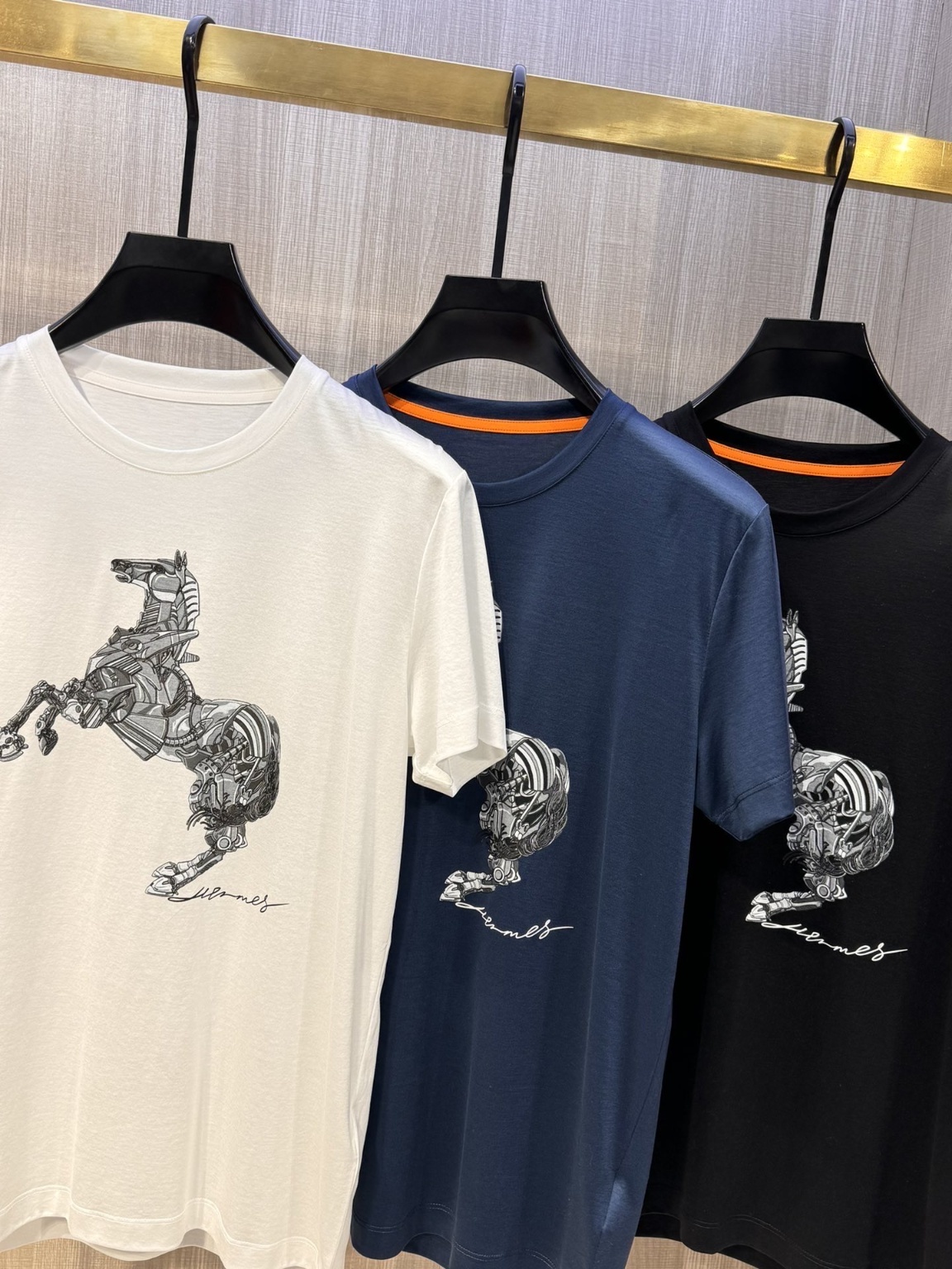 에르메스 2025 최신 프린팅 남성 라운드 티셔츠 고급 중공업의 2500메쉬 멀티 컬러 스크린 프린팅 공법을 사용하여 일반 프린팅과 디지털 프린팅보다 몇 배 더 정교하고 부드러운 색상으로 세련되고 또렷하며 층층이 두터운 느낌 없이 오래 세탁해도 색이 떨어지지 않음 란징텐셀(70% 텐셀, 30% 면, 전문 기관에서 테스트 보고서 제공) 촉감이 매우 우수하며 일반 실켓 면보다 부드럽고 매끄러움