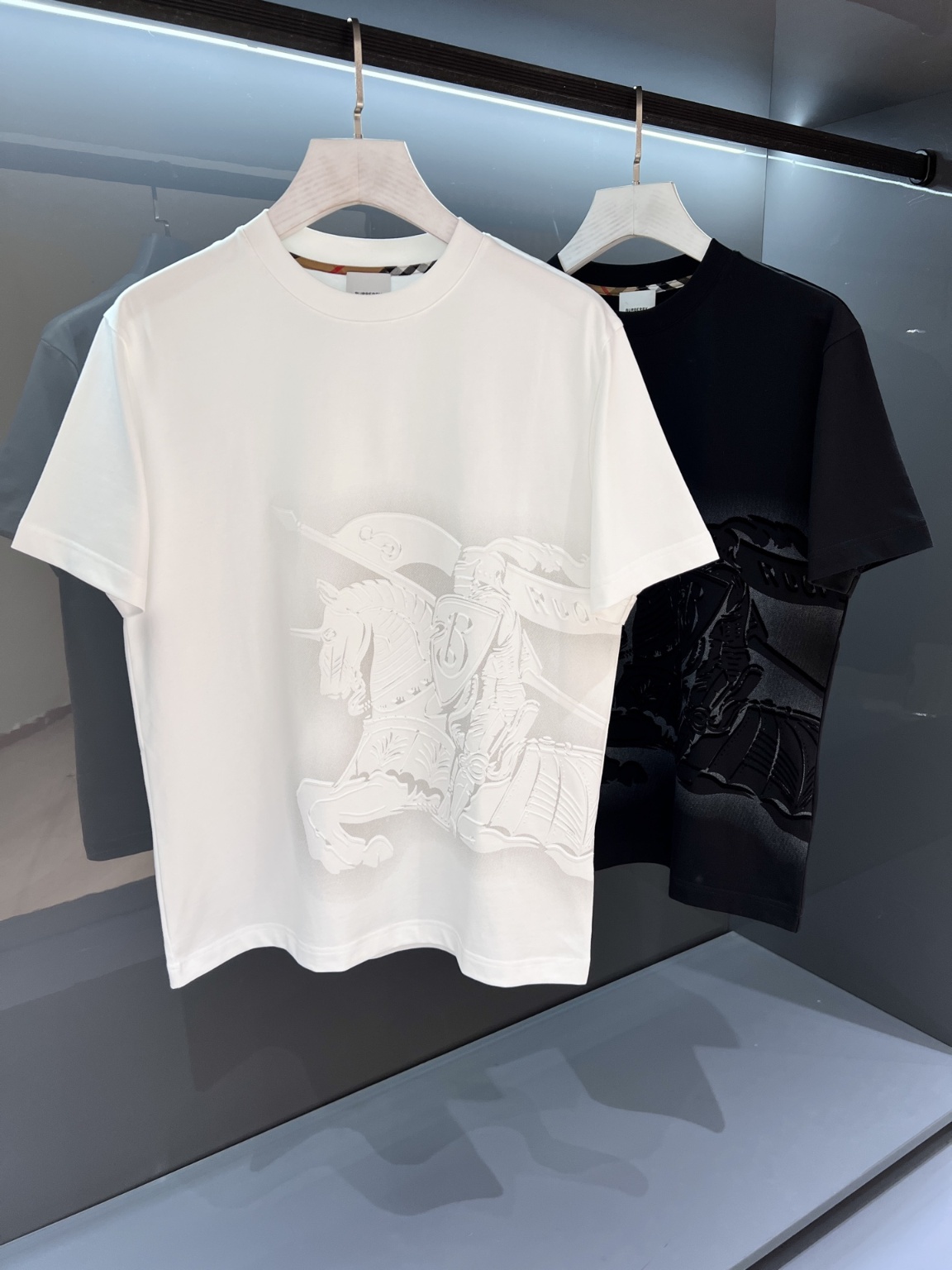 버버리 2025 남성 라운드넥 반팔 티셔츠 무역 채널 상품, 독특한 색 조합 기술 정교한 자수 공예감으로 뚜렷한 볼륨 효과를 나타냄 기존의 오프셋 인쇄 패턴과 구별되는 단단한 질감 S사이즈 어깨너비43 가슴둘레102 총장68 소매길이22