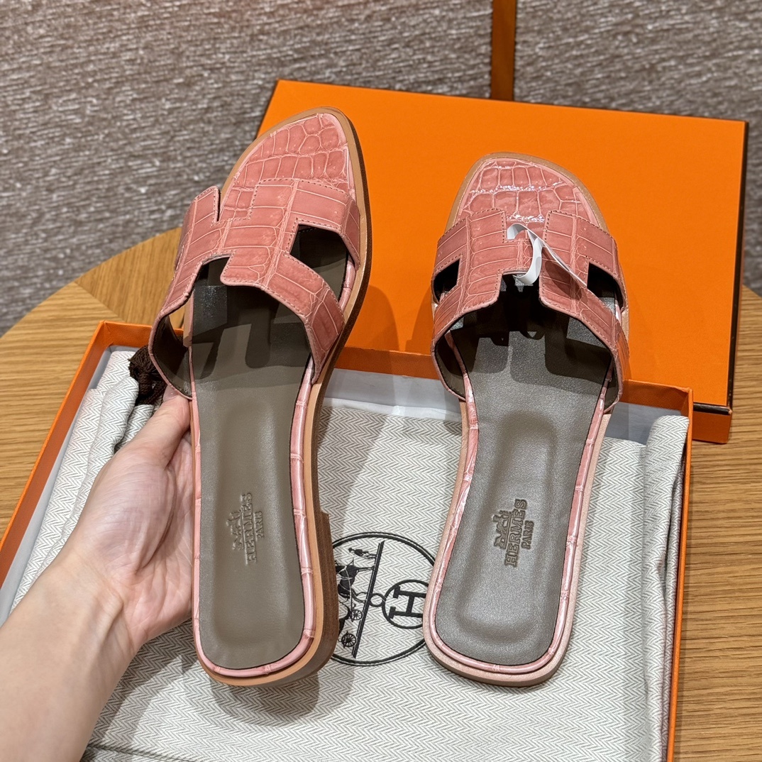 스타일: Oran 슬리퍼 색상/Colour: 세라믹파우더/Terre Cuite 바닥재/Upper material: 악어/aligator 바닥재 / Bottom materials: 진가죽창 / Dermal outsole Leather: Matte alligator imported From France which originally from Mississippi 반사이즈 주문제작 불가, 본 제품은 희소가죽으로 교환 불가 저희 매장 제품은 모두 수작업으로 제작