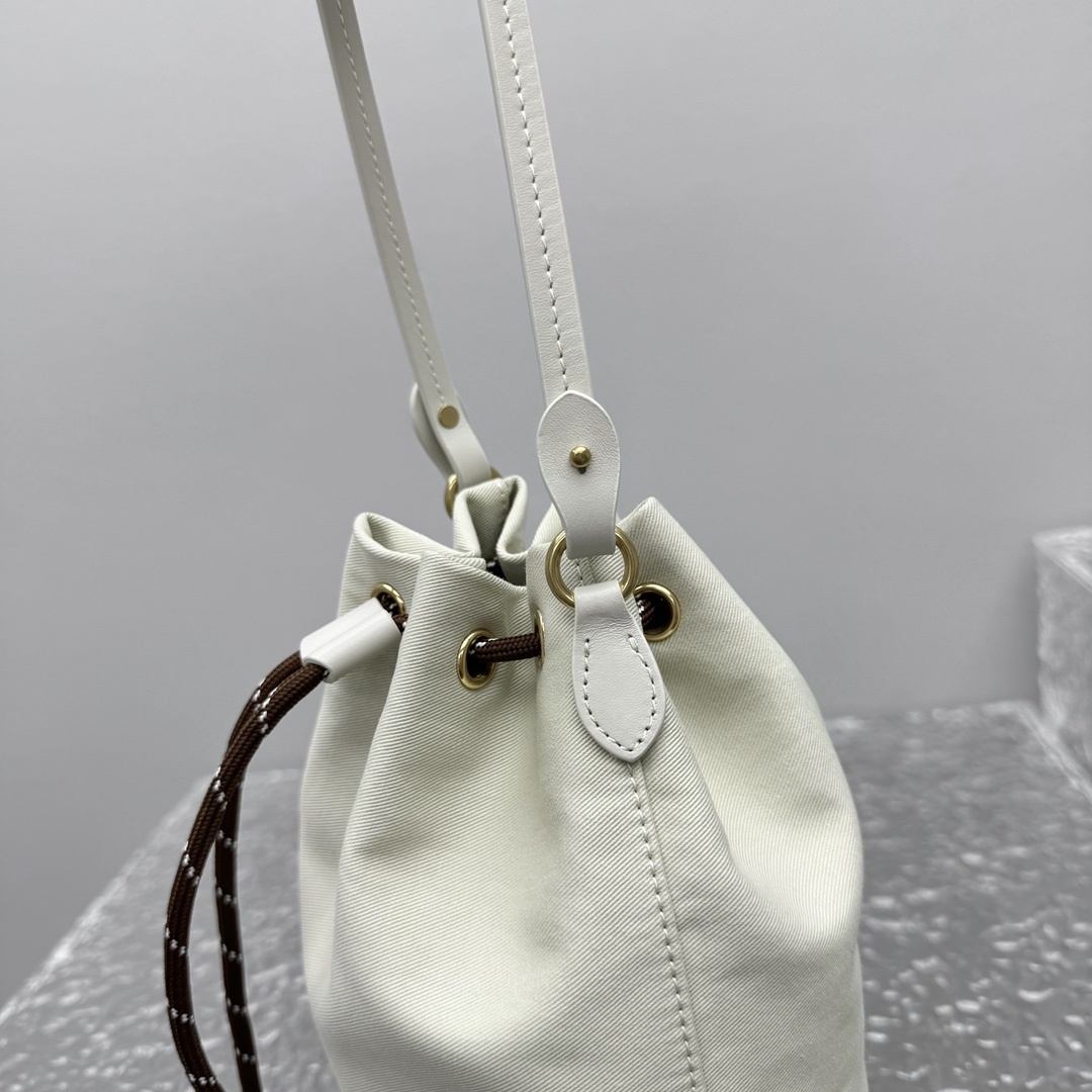 미우미우 25ss 개버딘 탑핸들 버킷백 새로운 버킷백은 투톤 우븐 밴딩 가죽 스트랩으로 되어 있어 수납물이 흘러내릴 염려가 없으며 톤온톤의 클래식한 로고로 절제된 심플함이 돋보이며 내부 용량이 깊어 일상 생활에 적합하며 캔버스 소재로 내구성이 좋고 관리가 용이하며 탈부착이 가능한 가죽 어깨끈으로 체인과 가방걸이를 매치할 수 있어 매우 실용적인 가방 사이즈 : 밑창 15.5x 밑창 10x 높이 23cm