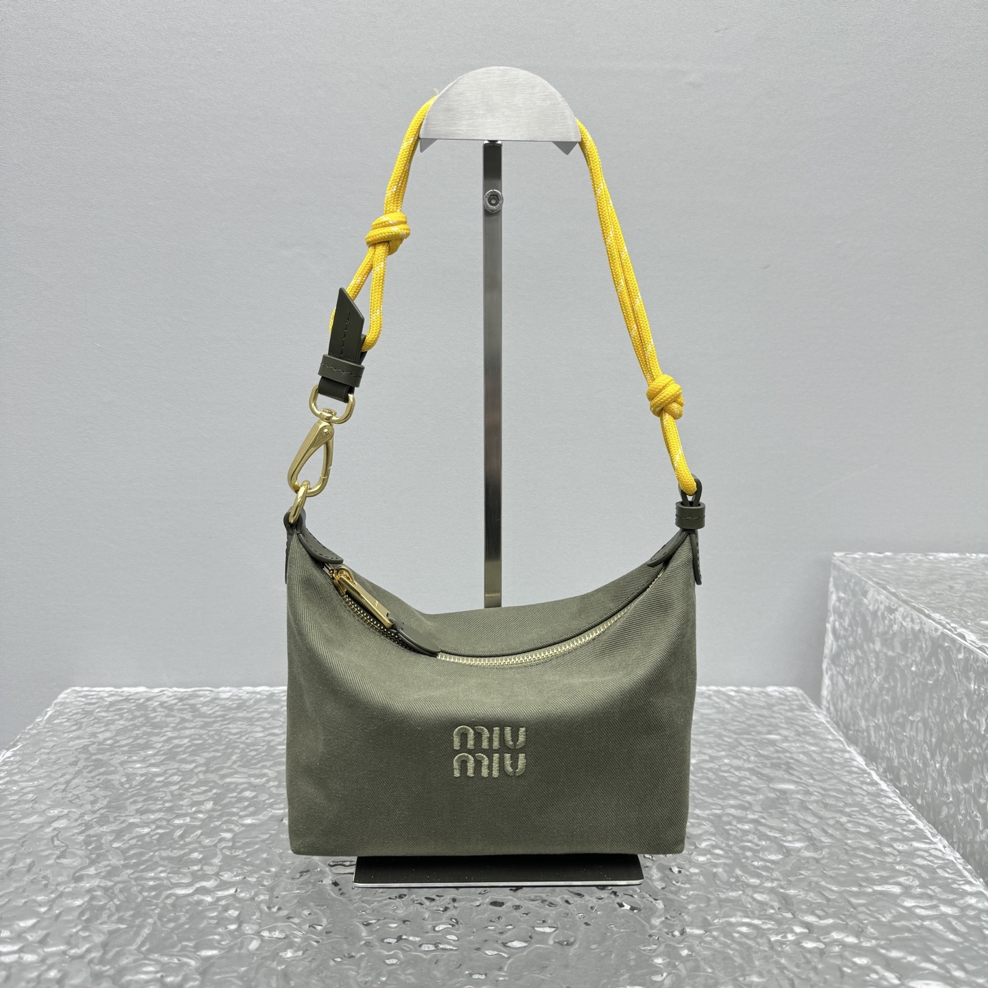 미우미우 개버딘 파우치 큐티한 도시락 가방라인으로 베스트 아이템 중 하나 트윌 방수 캔버스 원단과 톤온톤의 자수 로고 투톤 컬러의 스트랩 매듭으로 시크함을 더했으며 긴 숄더 스트랩을 매치하여 크로스백으로 가능 뛰어난 용량으로 데일리 아이템으로 손쉽게 수납 가능 사이즈: 바닥길이 18.5x높이 14x폭 10cm