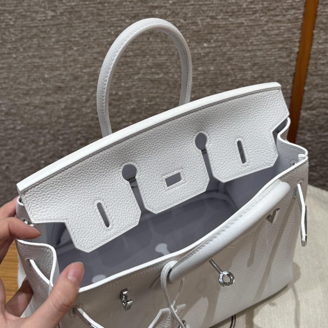 Style:Birkin Colour:01/Blanc Size:25*20*13cm Leather:togo From France Hardware:silver 버킨백 25cm, 퓨어 화이트, 프랑스 수입 토고 소가죽 속바느질, 은단추, 고급스러운 풀 핸드메이드 전용 맞춤 제작 핸드메이드 못, 핸드메이드 철물, 정강 도금 18k 철물 주문 실사
