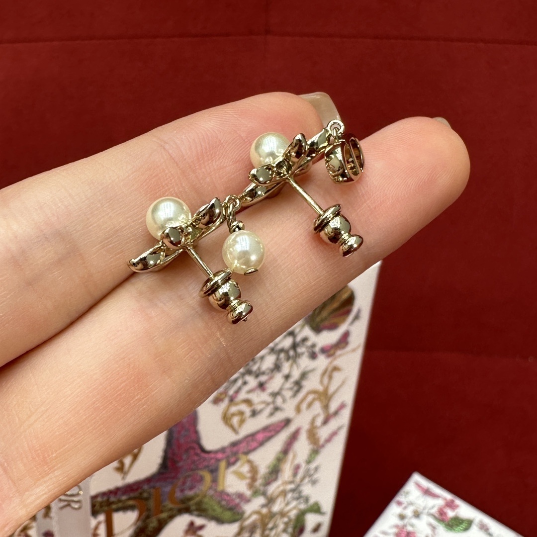 DIOR 태양꽃 언밸런스 이어링 꽃 모양은 말도 안 되게 정교하고 둥근 진주가 꽃 한가운데 자리 잡고 있어 마치 아침 꽃잎 위의 이슬방울처럼 부드럽고 촉촉한 광택을 발산함 한쪽 꽃에는 CD의 클래식한 로고가 드리워져 있고 다른 쪽에는 작은 진주가 있어 언밸런스한 디자인으로 생동감 넘치는 매력을 더했음