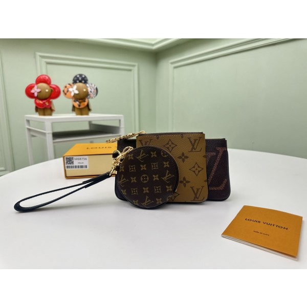 모델번호 M68756 루이비통 모노그램 트리오 파우치 LV Circle 지퍼로 안정감 있는 보호를 제공하며 손목이나 벨트 등에 고정할 수 있음 사이즈: 19.5 x 11.5 x 3.0 cm