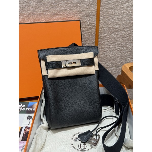 Style:Hac a dos Colour:89/noir Size:28*18*8 Leather:togo From France Hardware:silver 핵아도 PM, 블랙, 프랑스 수입 순정 가죽, 실버 버클 고급스러운 풀 핸드메이드 전용 맞춤 제작 핸드메이드 못, 핸드메이드 철물, 정강 도금 18k 철물 주문 실사
