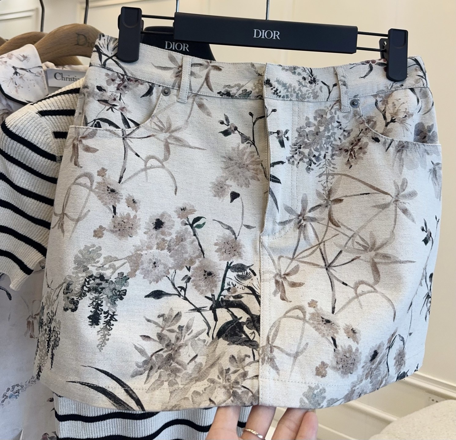 Dior 2025 새로운 수묵화 프린팅 스커트 일자 A라인은 다리가 길어 보이고 극도로 날씬해 보임 맞춤형 면과 린넨 혼방 소재로 편안하고 가벼운 스타일 끈과 디테일한 철물은 모두 맞춤 로고로 제작되었으며 이후 새로운 가죽 스탬프가 있어 질감이 가득하고 어디에나 잘 어울림