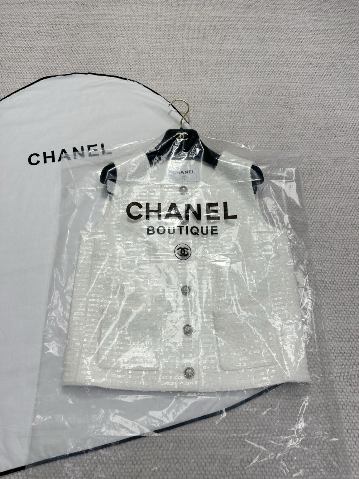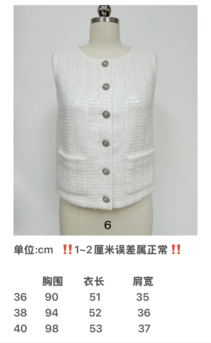 샤넬 25S 비즈 베스트 순백색에 동백 브로치를 매치하면 더욱 멋스러움 오리지널 주문 제작 원단 우리 집은 지금 그 조정판을 대여섯 판 정도 해야 완성할 수 있음 핏에 대한 요구가 매우 높음 겉보기에는 같은 옷에 약간의 미숙함이 있으면 전체 옷에 모두 실패 아무리 좋은 원단이라도 핏이 제대로 만들어지지 않으면 이 옷은 아무런 가치가 없음 우리의 모든 세부 사항은 전부 오리지널 제품으로 제작 안감은 100% 실크