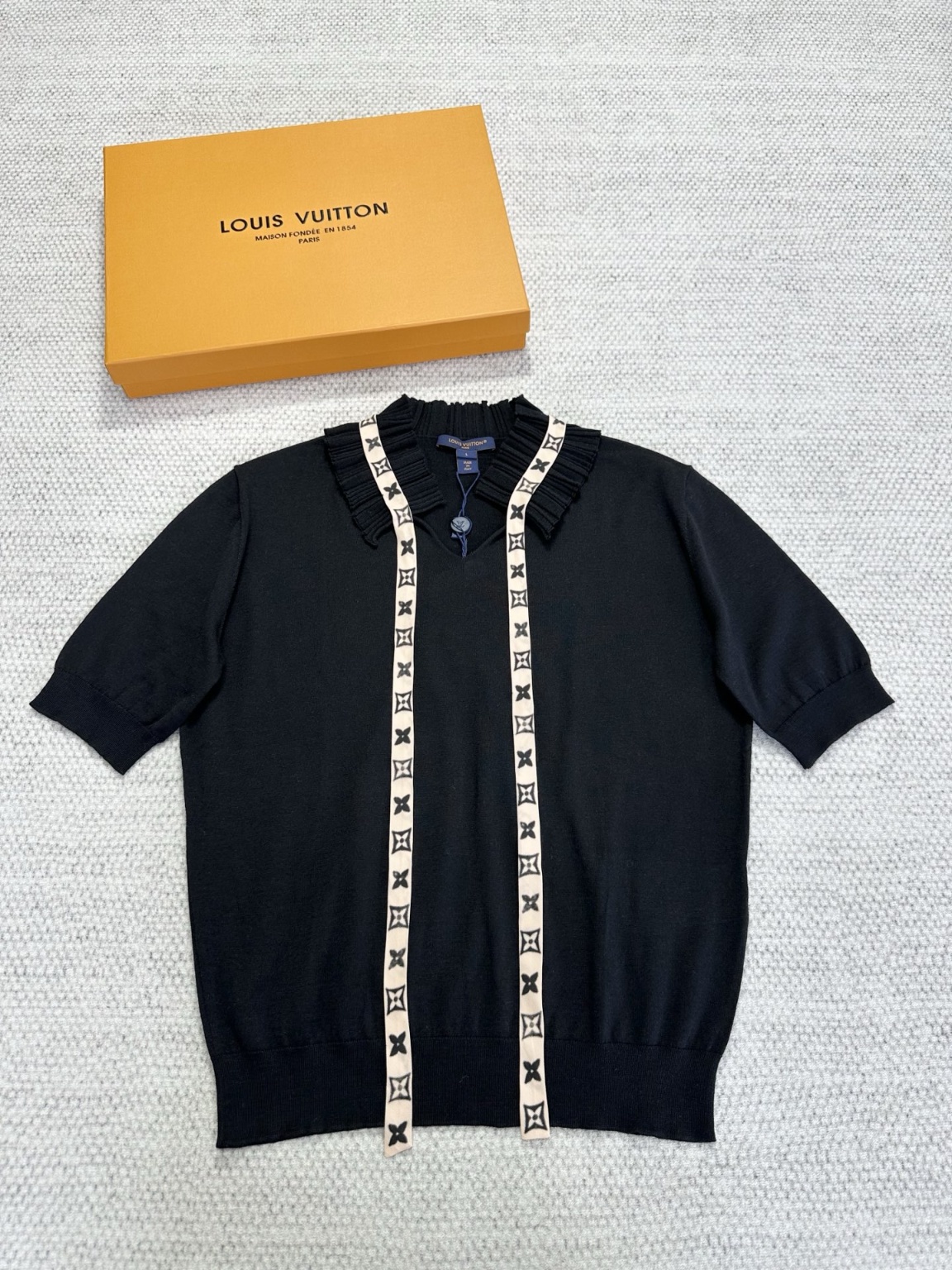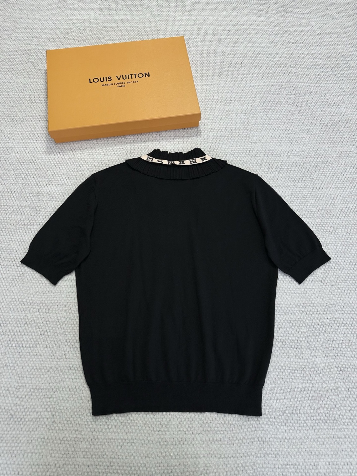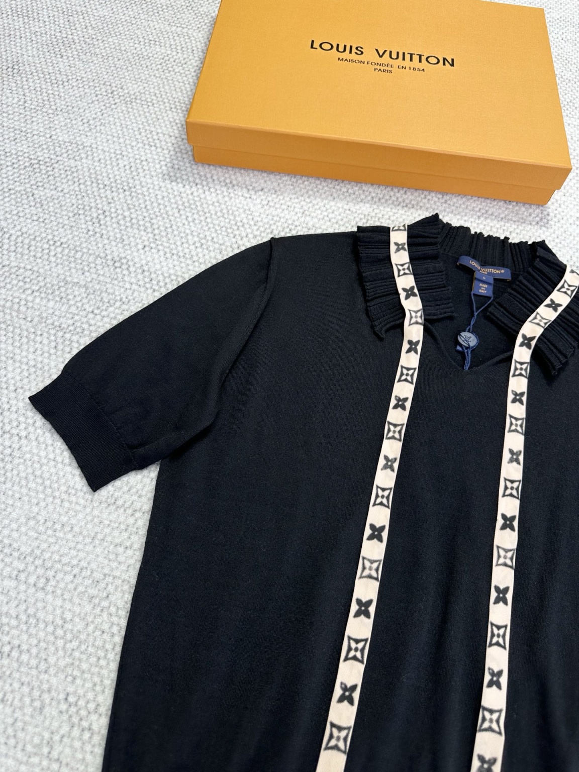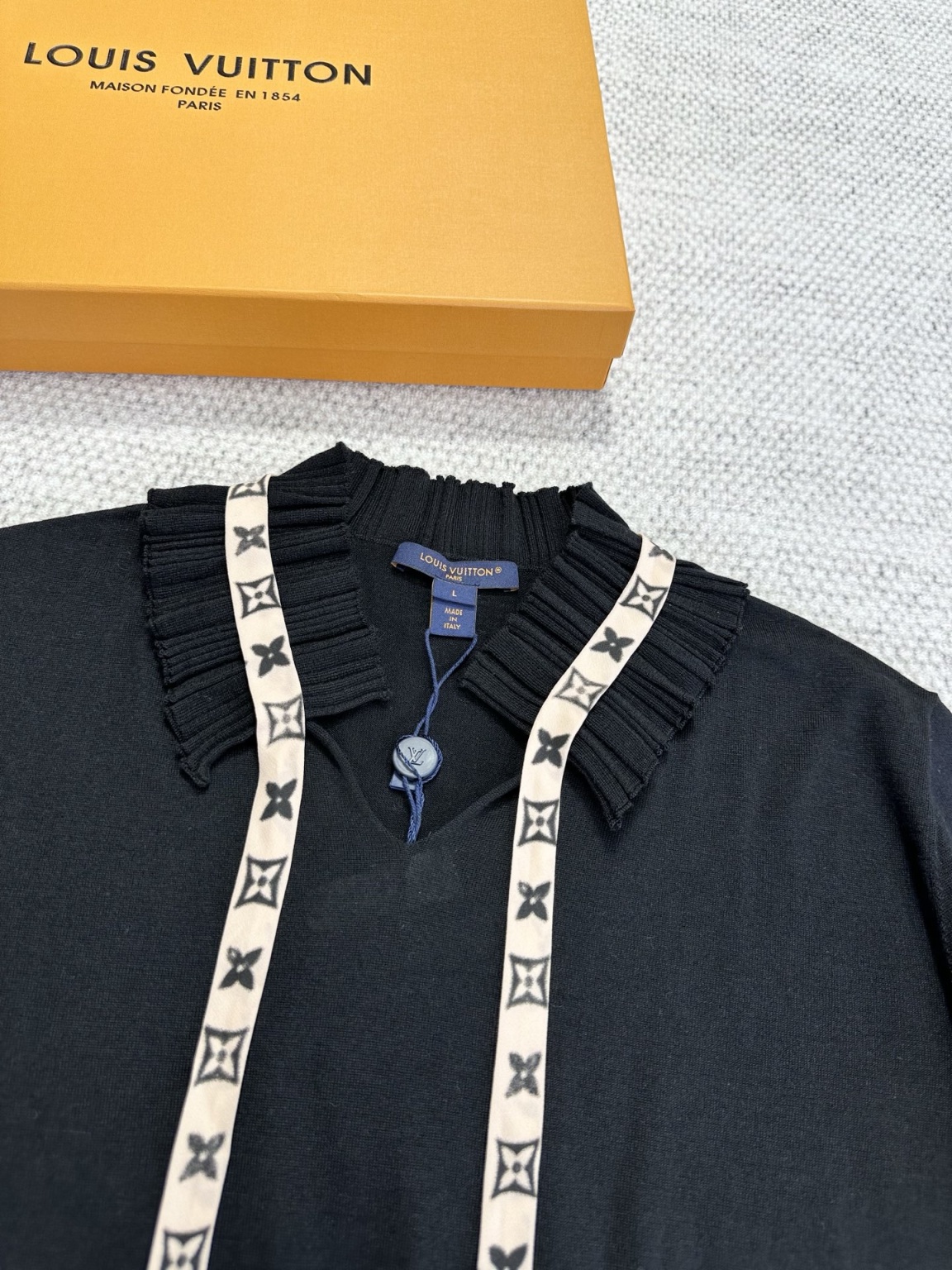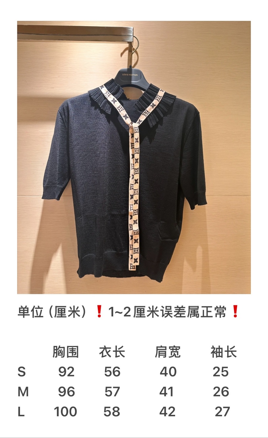 LV 넥타이 실크 반팔 니트, ZP15000 실크, 수입 18핀 편직 로맨틱한 플리츠 컬러에 모노그램 패턴을 접목 실크 넥타이를 우아하게 매듭을 지을 수 있임 착용 시 캐주얼하고 편안하여 데일리 코디로 좋음