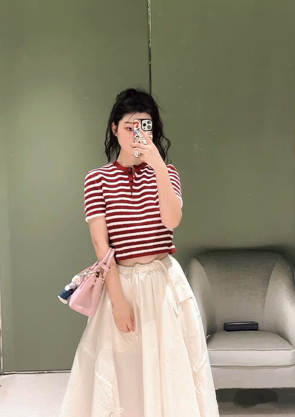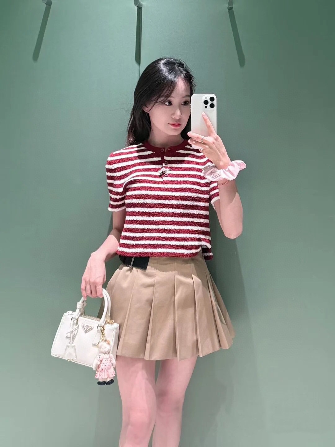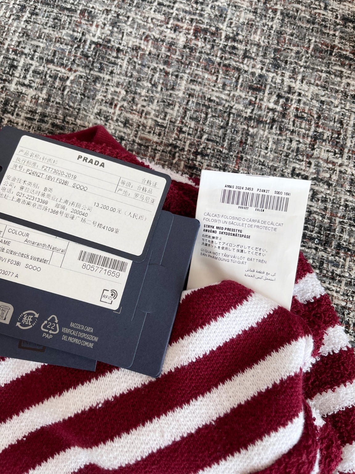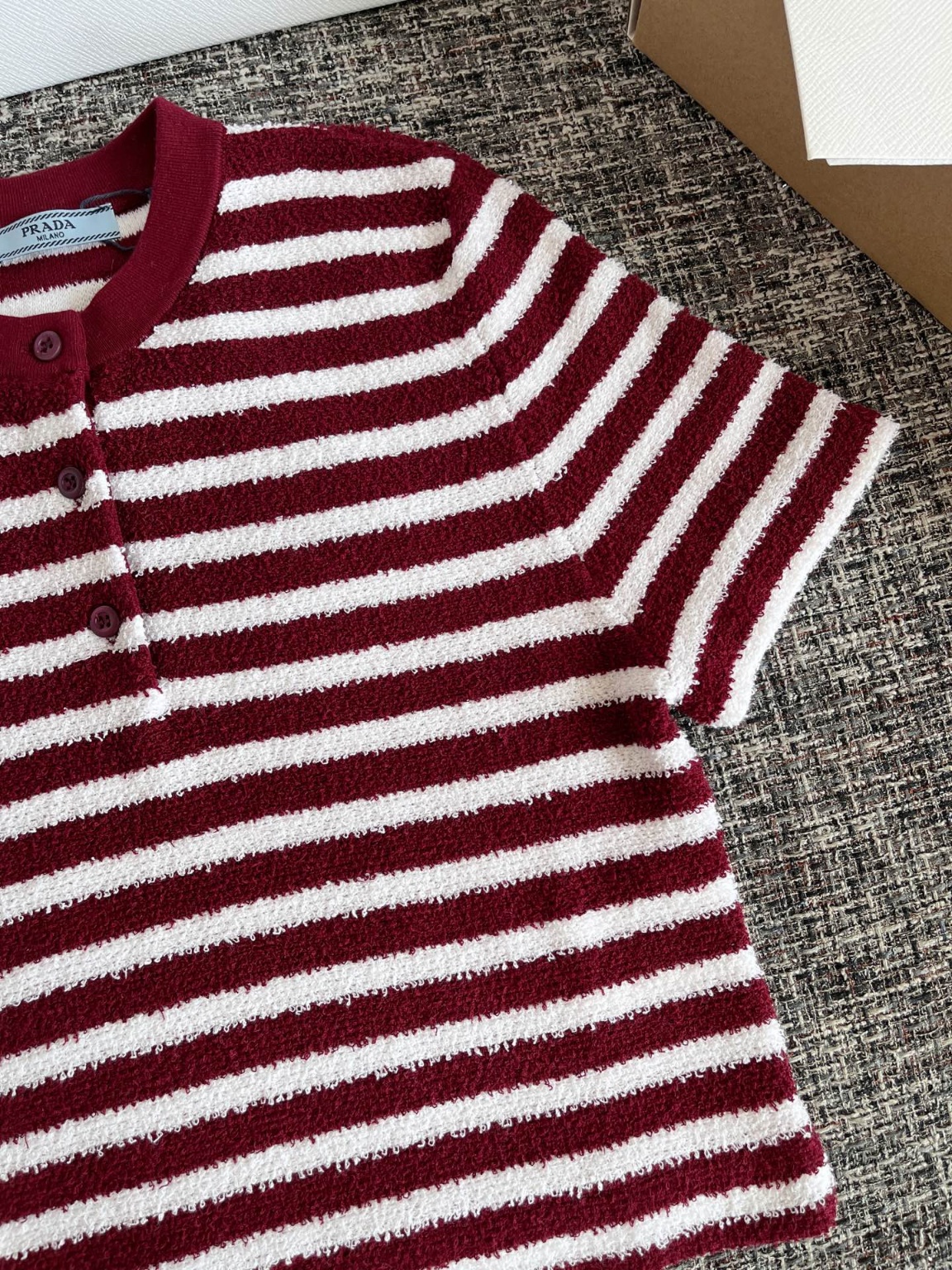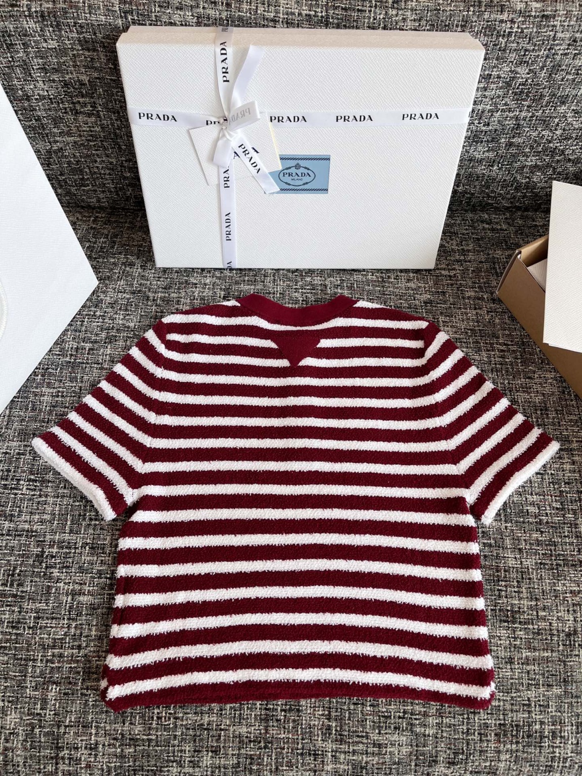 프라다 25 이른 봄 반팔 니트 ZP13200 분해 제작 페루 줄무늬 특수 원단 주문 제작 정품 100% 오리지널 재료와 출고 디테일 환원도 98 이상 제작 정품 1:1 환원