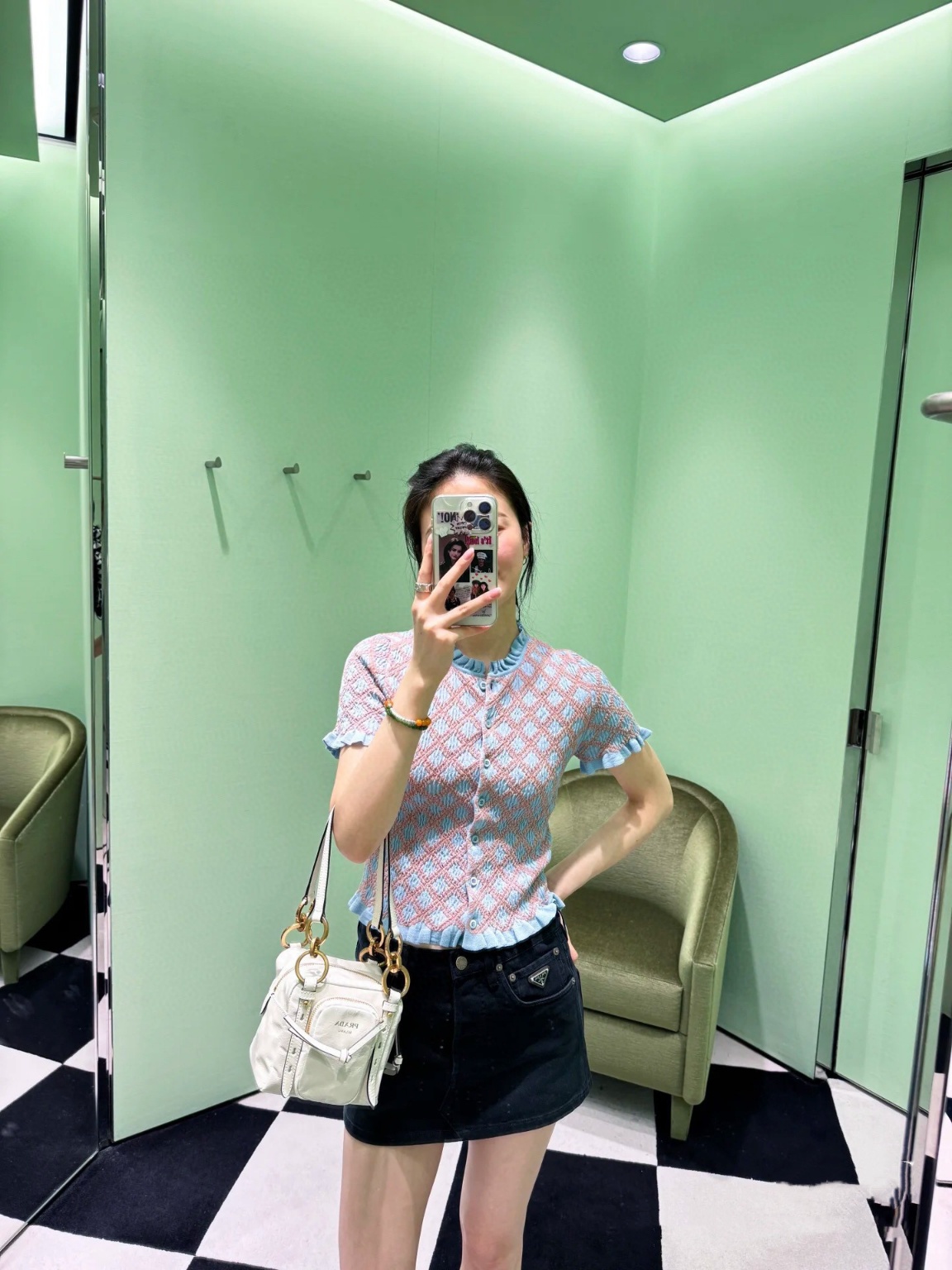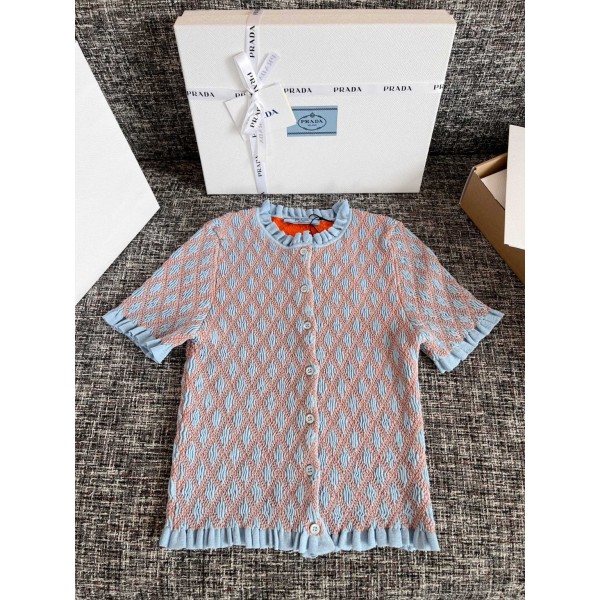 프라다 25 이른 봄 프릴 카디건 반팔 ZP16200 분해 제작 면사 혼방 수입 원단 주문 제작 실제 100% 오리지널 재료와 출고 디테일 환원도 98이상 제작 진짜 1:1 환원