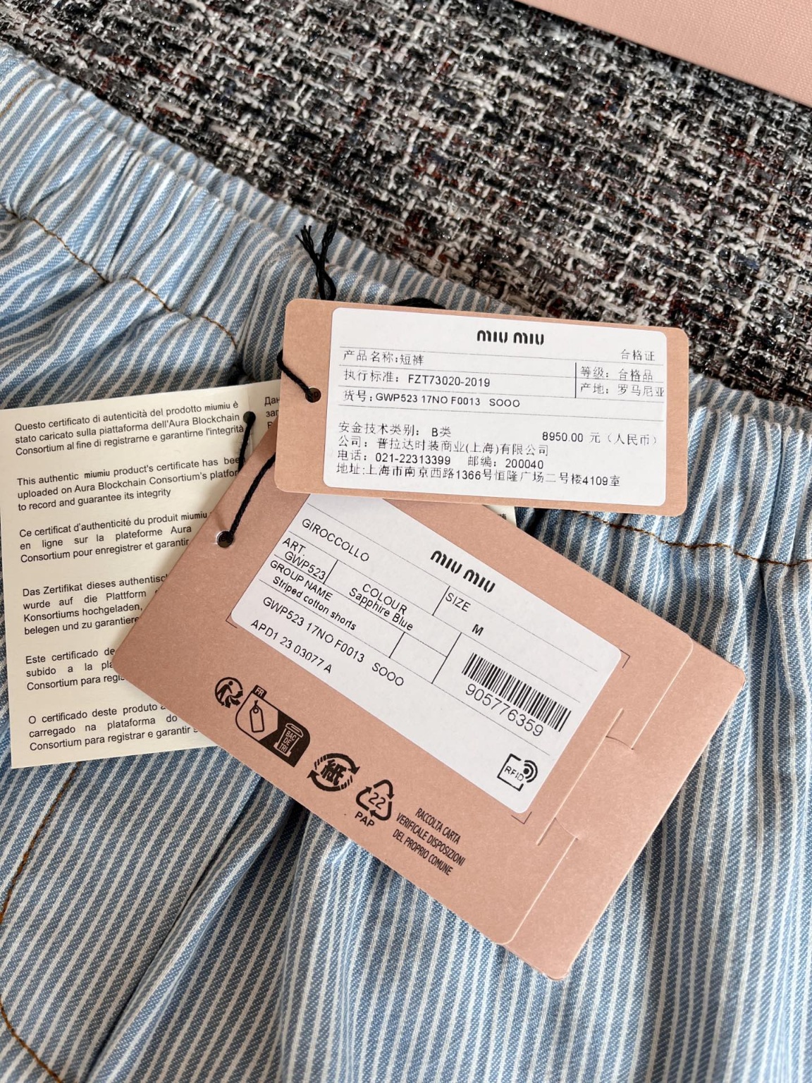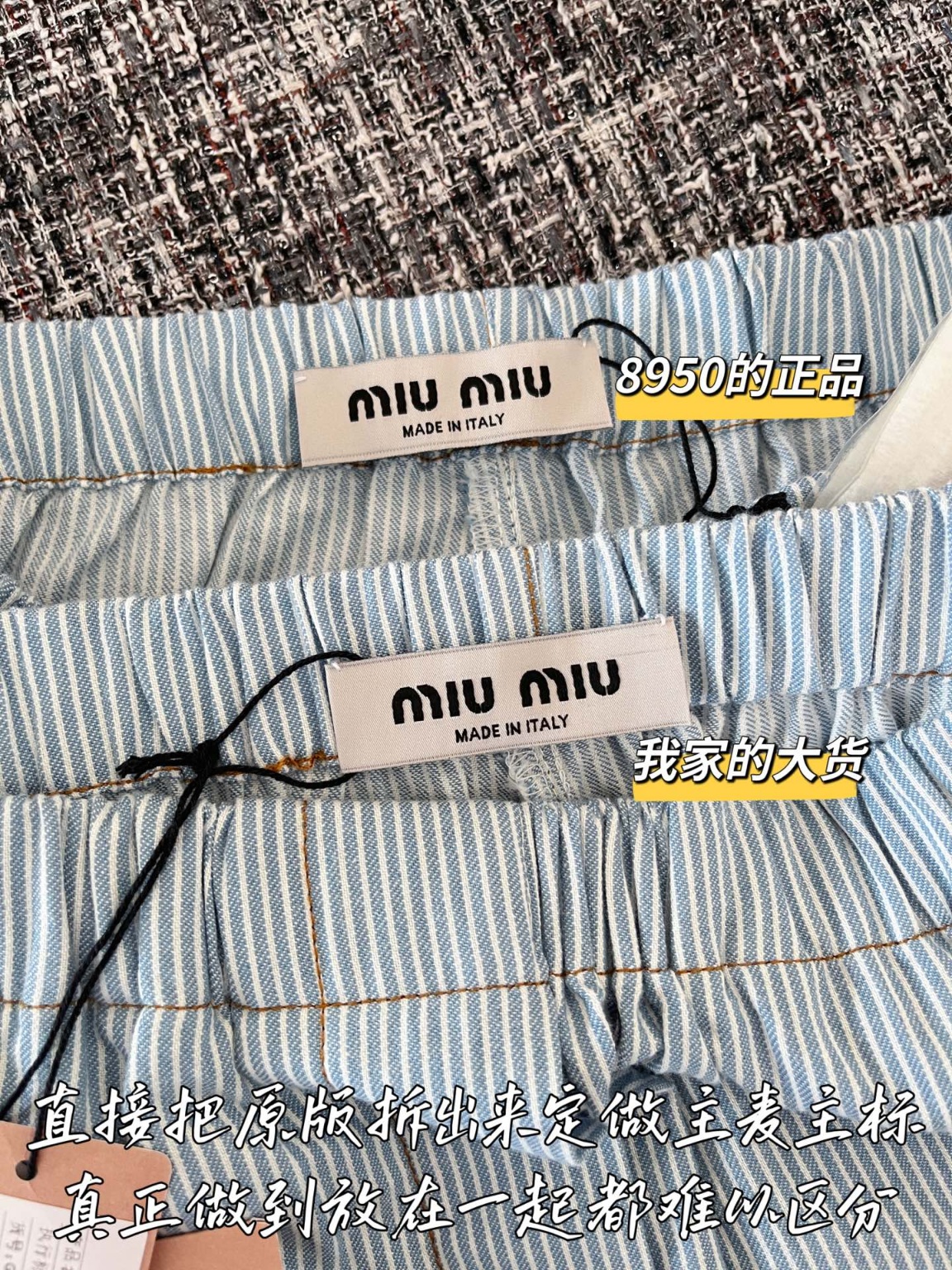 MiuMiu 25 이른 봄 핀 스트라이프 반바지 ZP8950 구매 분해 제작 페루 스트라이프 원단 주문 제작 실제 100% 순면사 직물로 맞춤 출하 디테일을 98 이상 재현 진짜 1:1 재현