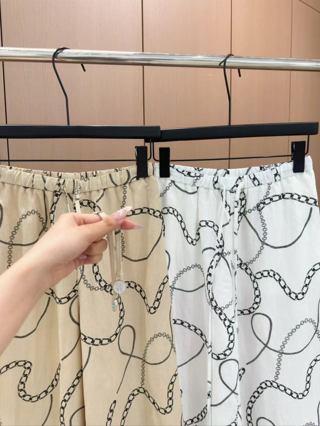 원본품질 에르메스 25 신상 린넨 프린트 캐주얼 팬츠 맞춤 제작 퀄리티 원단 질감 짱 컬러풀 스트링 와이드 스트랩으로 고급스러움을 살림 우아하면서도 핏감이 너무 좋음 작업 품질은 디테일을 보세요