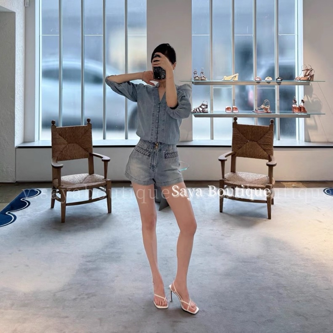 짐머만 2025 신상 빈티지한 데님 숏 팬츠 하이비주얼 풀라인으로 고민없이 깔끔한 느낌 촉감이 좋은 워싱 데님 면 구제 워싱 S사이즈 옆길이34.5 허리63.5 엉덩이95 발끝61.8