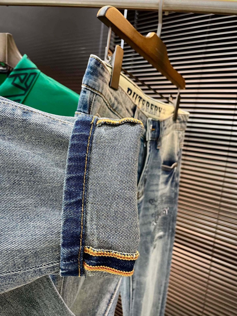 Burberry-(버버리) 2025 신상 청바지 수입 이태리 고급 데님 원단, 미세 스판 원단 편안하고 부드러우며 기존 데님 원단의 촉감을 뛰어넘어 덥지 않고 편안함이 뛰어남 매혹적인 핏을 연출하는 스트레이트핏 패션 아이템