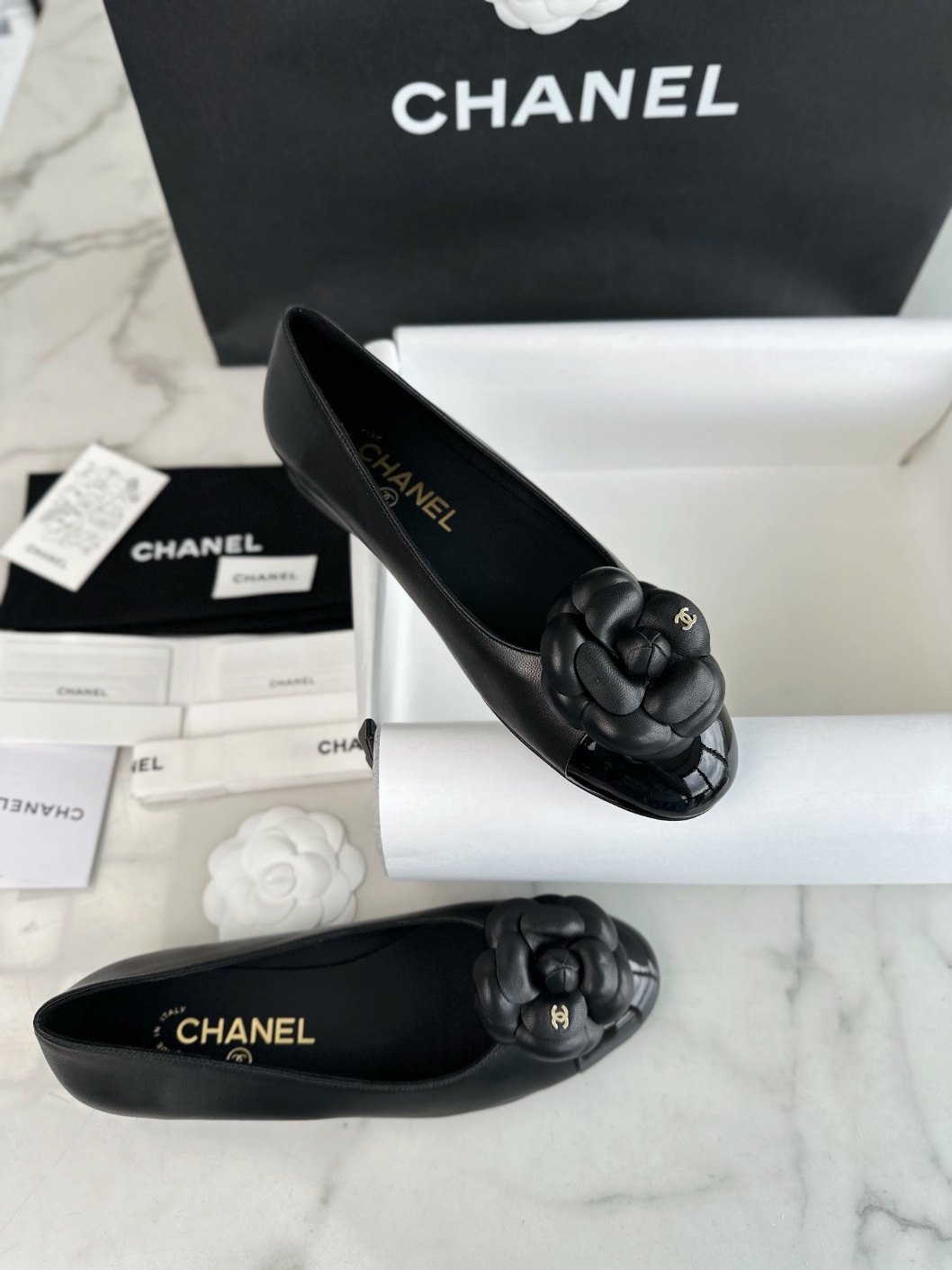 샤넬 24P 블랙 카멜리아 발레슈즈 양가죽+동백+리얼가죽 통굽 디자인이 편하고 힙하고 귀엽고 발랄함 카리스마와 아방가르드 완벽 조화 무시하기 힘든 존재 날렵함 더하기