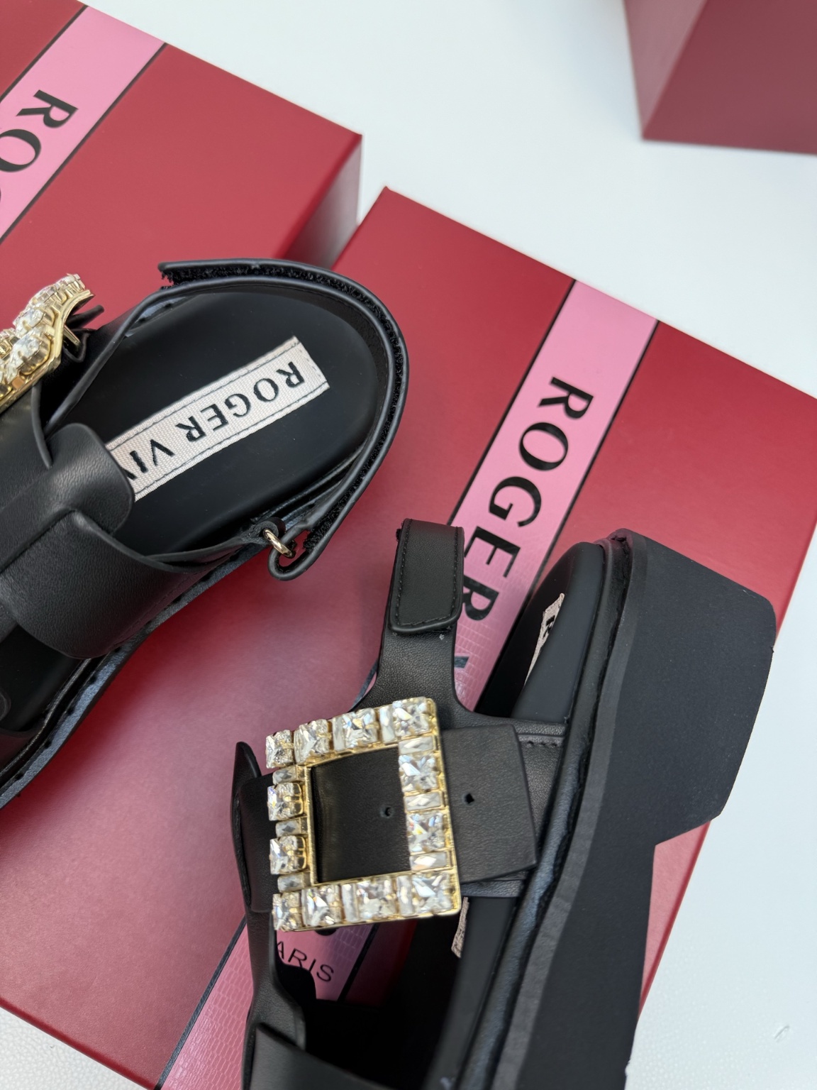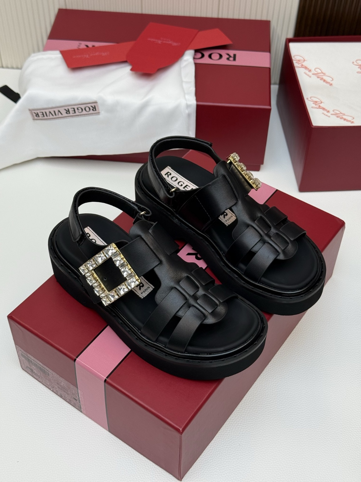 로저비비에 RV 25 봄여름 신상 비브레인저 통굽 샌들 최고급 버전 겉감 수입 송아지 가죽 안감 징검다리 양가죽 오리지널 사각 버클 장식 EVA 고무 발포 플랫폼