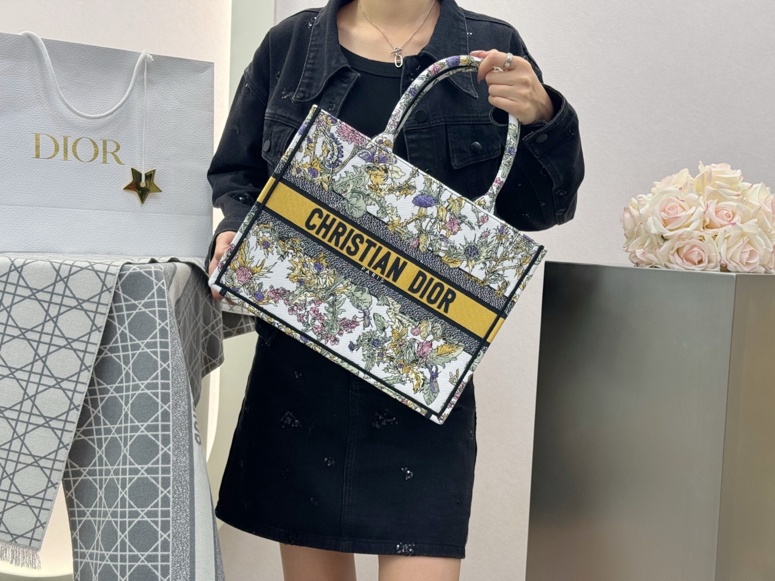 디올 최신형 북토트 미디엄 절묘한 컬러 배합, 다소 몽환적인 분위기 싱그러운 에너지, 눈에 띄는 우아함 모든 각도가 정말 정교하고 아름다움 고급스러움 가득 출퇴근 코디 자중이 매우 가볍고 외출 시 부담없이 착용가능 비주얼에 실용성까지 강추 사이즈: 36x28x16cm