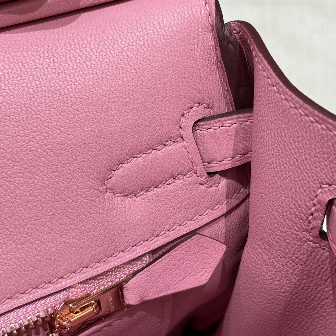 Style:Birkin Colour:X9/mauve Size:25*20*13 Leather:swift From France Hardware:Rose gold 버킨백 25cm, 모브, 프랑스 수입 소가죽 플랫 안쪽 심 로즈 골드 버클, 고급스러운 풀 핸드메이드 전용 맞춤 제작 핸드메이드 못, 핸드메이드 철물, 정강 도금 18k 철물 주문 실사