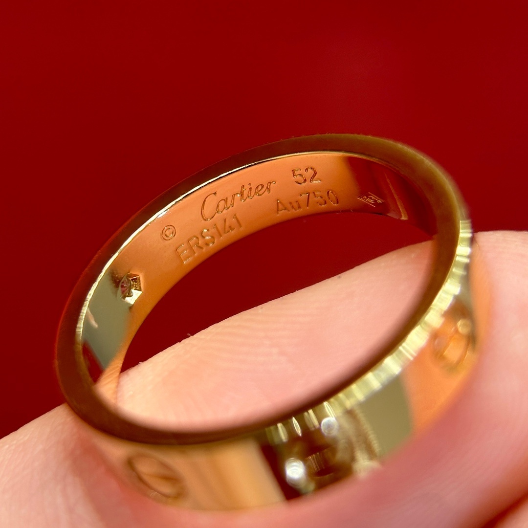 까르띠에 Love 시리즈 좁은 버전의 싱글 다이아몬드 반지 만년의 클래식한 시그니처 나사 디자인 매우 높은 인지도를 자랑하며 작은 다이아몬드 포인트로 수려함 손가락에 착용하면 심플하고 고급스러워요
