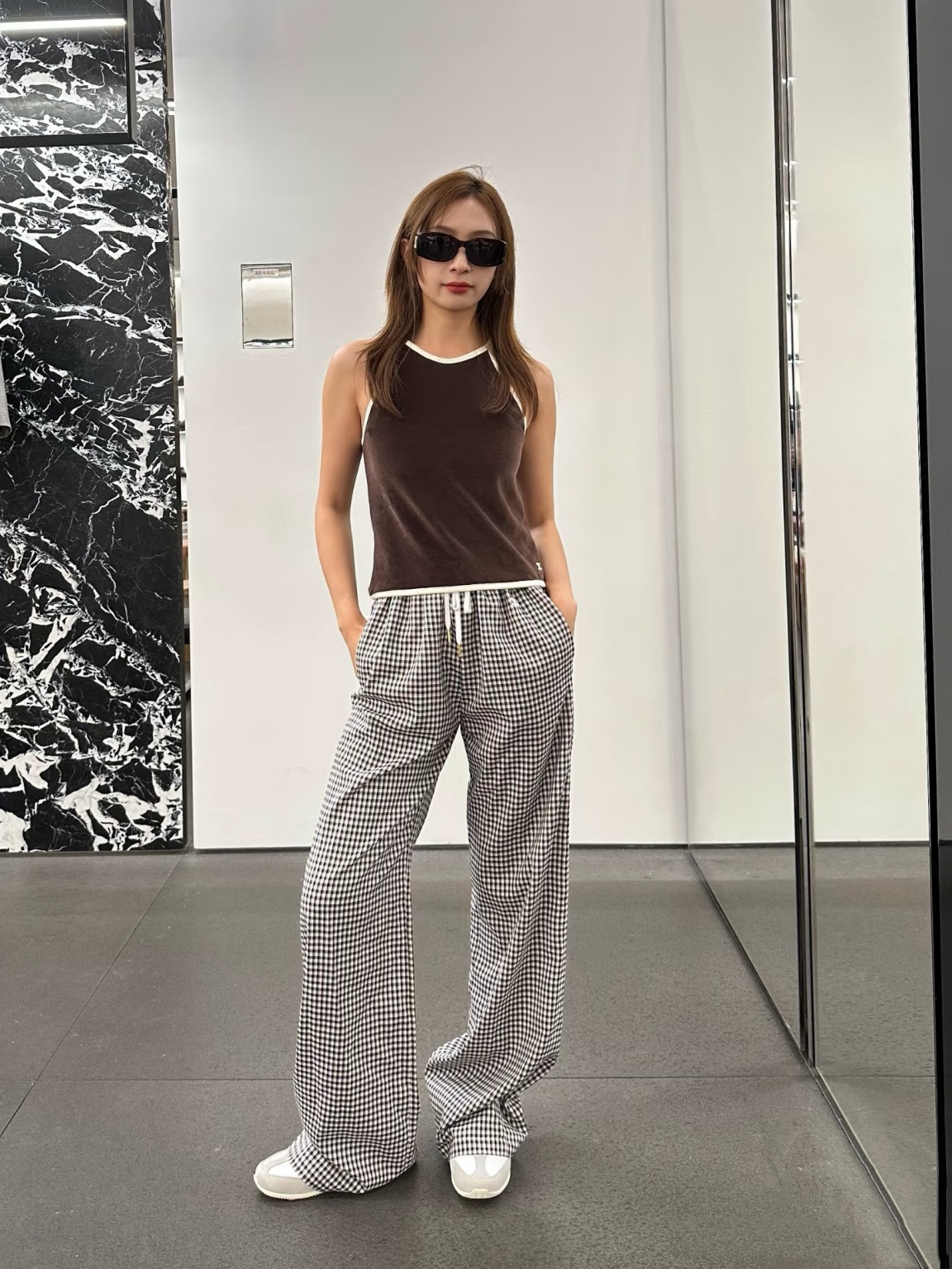 Celine 2025 신상 체크 팬츠 게으름뱅이 스타일리시, 실크 순면 혼방, 가볍고 편안함 여름에 입기에도 시원함, 어떤 상의에 매치해도 부담없이 소화 스타일리쉬하고 시원한 자외선 차단