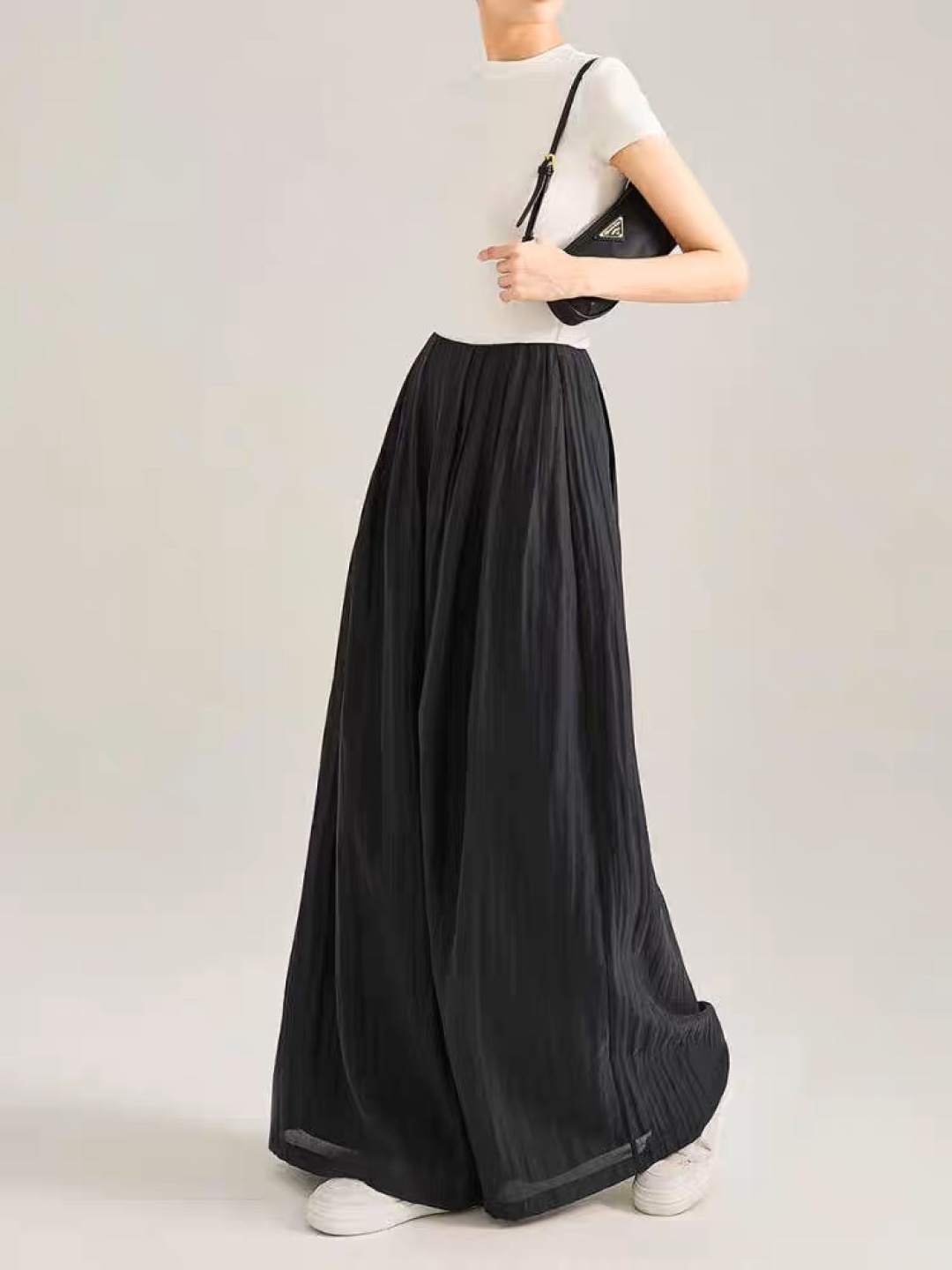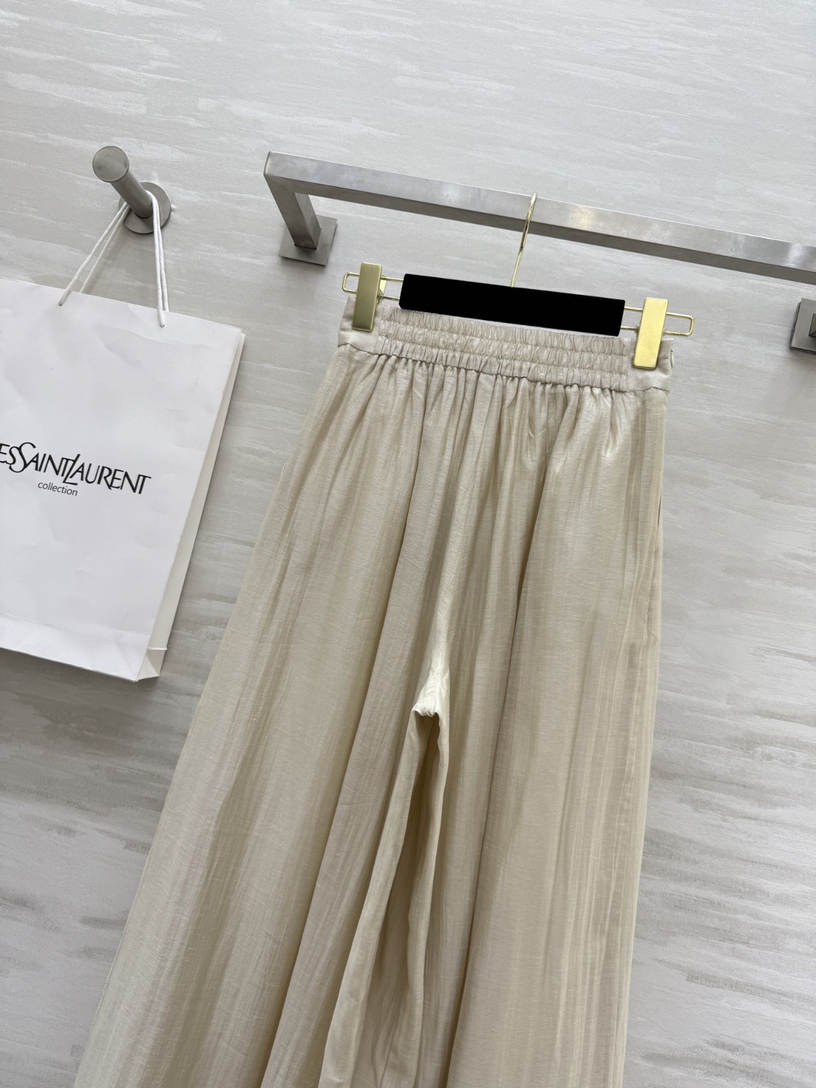 생로랑 YSL 실마 주름 와이드 팬츠 린넨+텐셀 원단으로 편안하고 부드러움 촤르르 떨어지는 원단 자체 결감 촉감이 시원하고 편안하며 찰랑거림이 굿 핏감이 정갈하게 골반을 가리고 날씬해 보이며 몸매를 가리지 않음 S사이즈 허리62 바지길이102