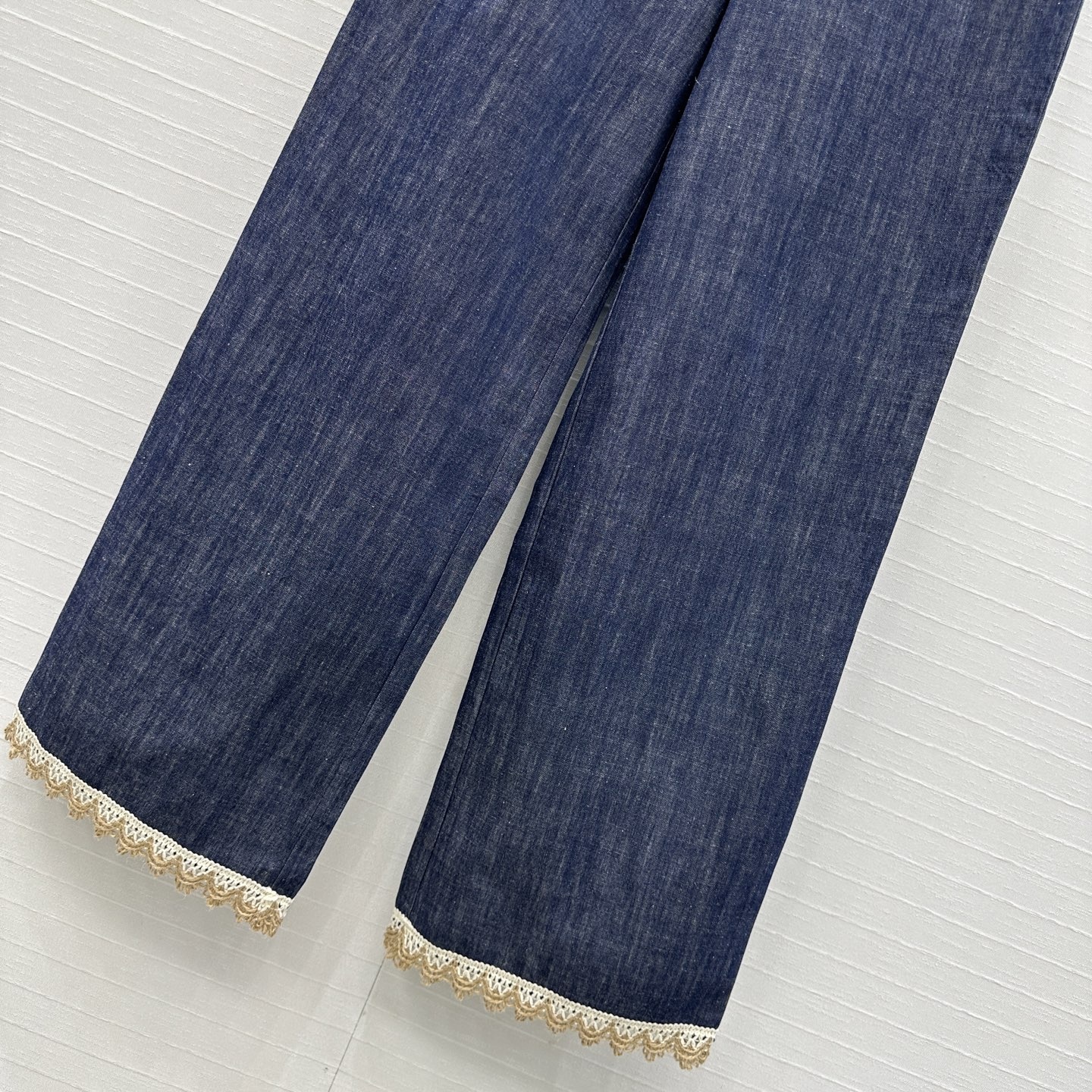 LP 남프랑스 데님 베스트 + 팬츠 세트 트리밍 풀 자수의 절제되고 럭셔리한 디테일이 돋보이며 클래식한 러플 라운드넥의 작은 A라인 트리밍 입체 자수로 절제되고 디테일이 가득하며 클래식한 일자핏 나른한 캐주얼함을 연출해주는 고급스러운 아이템 S사이즈 가슴둘레90 총기장53 S사이즈 허리68 힙92 바지길이104
