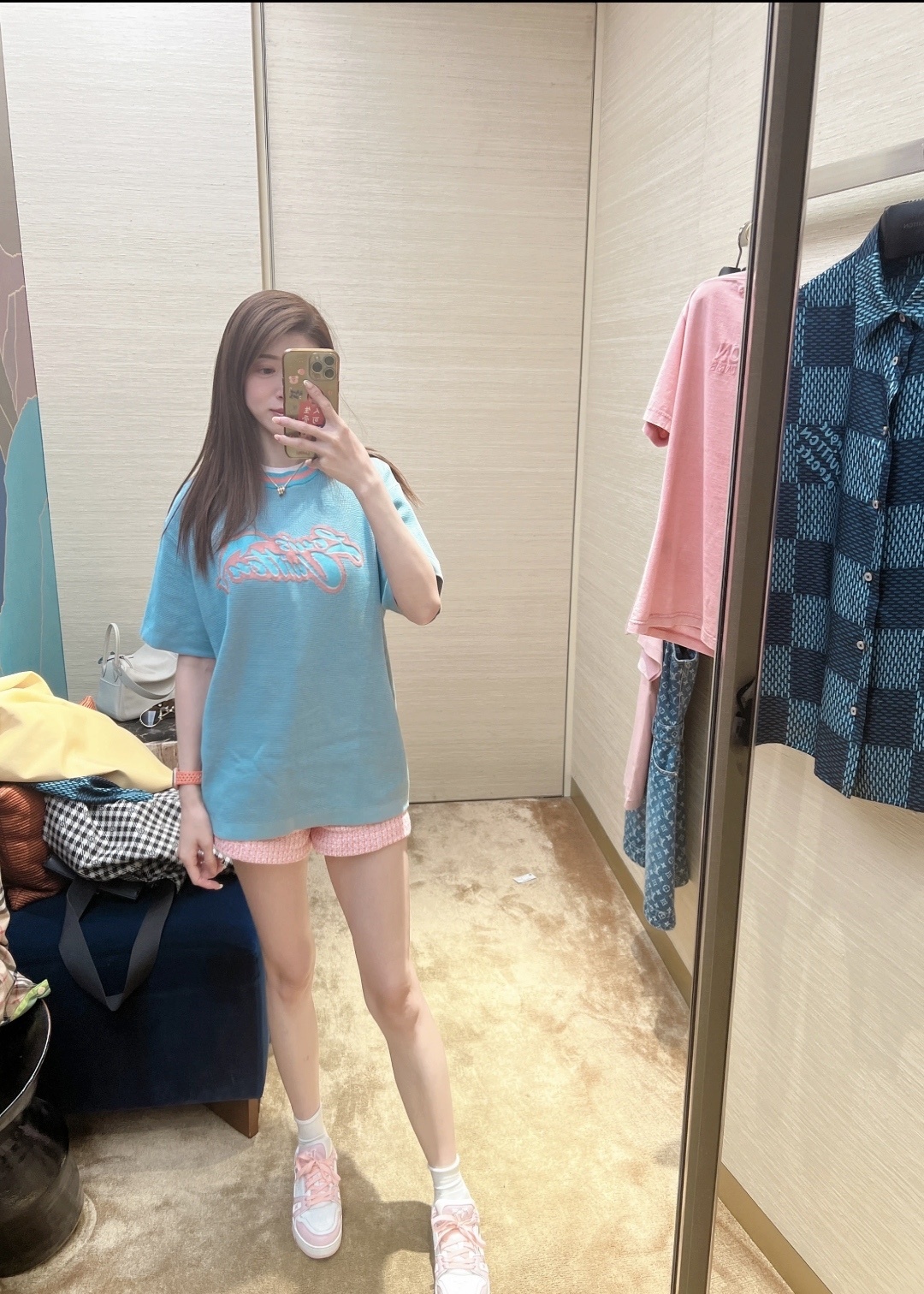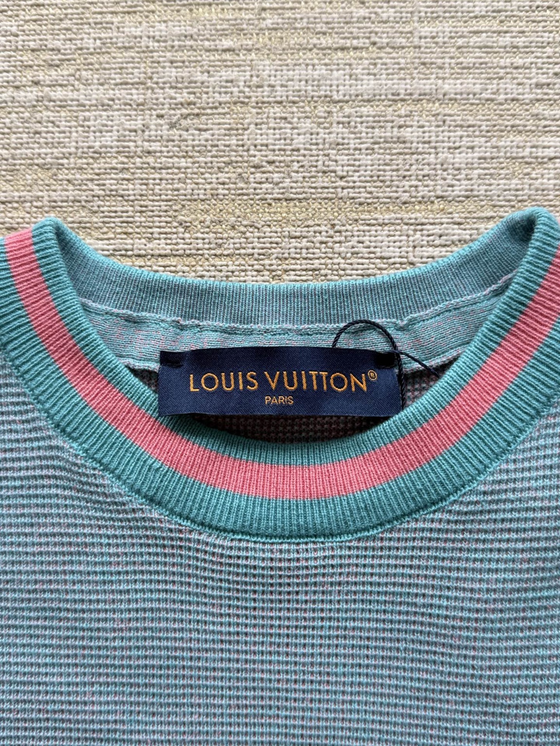 Louis Vuitton 25ss 와플 돌핀 자카드 니트 반팔 ZP 9150 구매 분해 제작 커스텀 와플 면 100% 수입 실, 앞판 장식 돌핀 자카드 디자인 자카드 주머니의 요철 촉감, 이태리 수입 12핀 컴퓨터 가로로 제작 컬러의 시그니처 골지 목선 커프스 진정한 1:1 복원