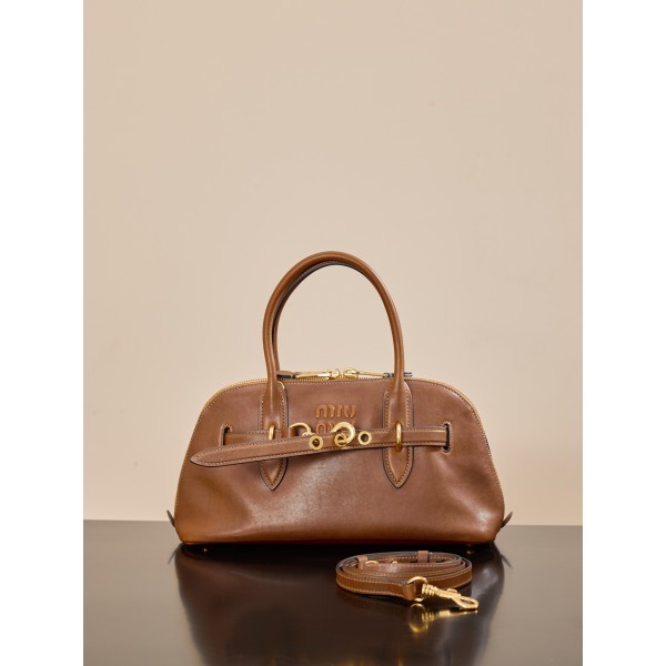미우미우 아방뛰르 나파 가죽 탑핸들백 코냑 오리지널 구제 양가죽 완전 폭신폭신 복고 건축적 실루엣 + 벨트형 디자인 미디엄 사이즈 백타입으로 용량 오버 절제된 럭셔리와 빈티지 미학 손잡이/긴 숄더끈 탈부착 조절 가능 앤티크 골드 메탈 액세서리 size:33*17*11cm 모델번호:5BB168