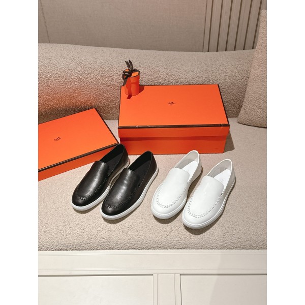 Hermes Julian 커플 슬립온 스니커즈 Julian 라인의 송아지 가죽과 스웨이드 염소 가죽 끈 없는 스니커즈로 시그니처 H 디테일이 장식 겉감: 오리지널 테일러드 수입 탑 소가죽/소털 안감: 수입 소프트 양가죽 밑창: 오리지널 몰드 오픈 미끄럼 방지 TPU 소재
