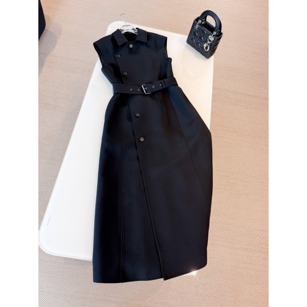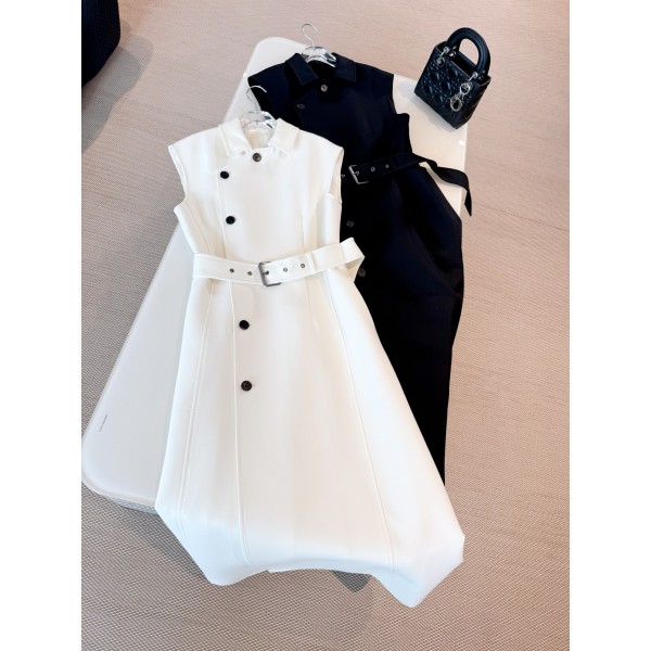 DIOR 25s 흑백 모직 와이드 벨트 정장 원피스 베이지 컬러의 울 혼방 와다베이지 컬러의 슬림한 일자핏에 사이드 버튼 여밈과 볼륨감을 더한 캡소매 세련된 톤의 벨트로 허리라인을 살려 격식을 높여 우아한 스타일링을 완성할 수 있음