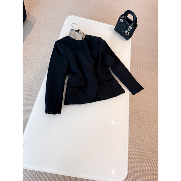 DIOR 25s 반하이넥 울 오버핏 입체 버튼 정장 코트 블랙 울 혼방 원단으로 정성껏 제작되었으며 세로로 칼라를 세워 베이지 컬러의 털 안감을 높여주는 플랩 포켓으로 허리 라인을 살려주며 곡선의 밑단 테두리로 실루엣을 우아하게 잡아주어 스타일리쉬한 룩을 연출해줌