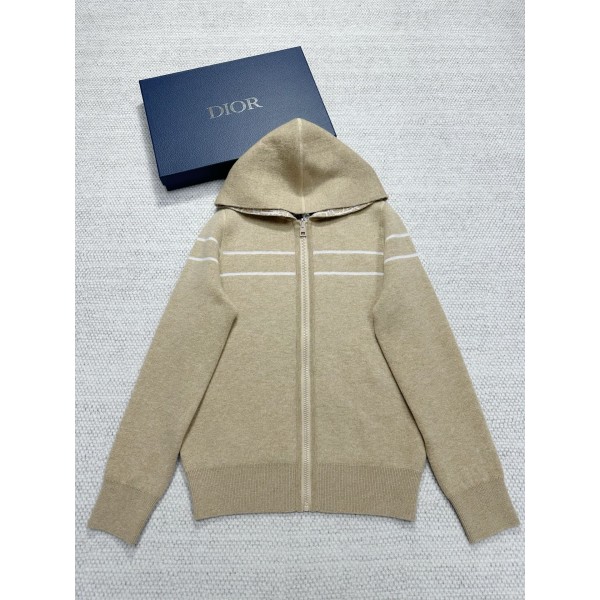 디올 양면 캐시미어 후드 코트 ZP31000 캐주얼하고 실용적, 캐시미어 혼방 니트 원단으로 정성스럽게 제작 전면 지퍼 여밈과 골지 밑단, 소매 끝단을 매치 한쪽 면은 베이지, 다른 한쪽 면은 클래식한 오블리크 프린트 뒷면에는 크리스찬 디올 로고의 스트라이프 패턴이 장식 같은 계열의 팬츠에 코디해서 세트로 들어감