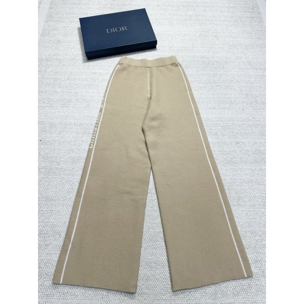 디올 양면 캐시미어 와이드 팬츠, ZP30000 부츠컷 팬츠로 캐주얼하고 실용적인 매력을 뽐냄 한쪽 면은 베이지 컬러의 캐시미어 혼방 니트 원단으로 제작 다른 한쪽 면은 클래식한 오블리크 프린트 크리스찬 디올 로고로 바짓가랑이가 장식 나팔 모양의 실루엣으로 다양한 스타일을 만들 수 있음