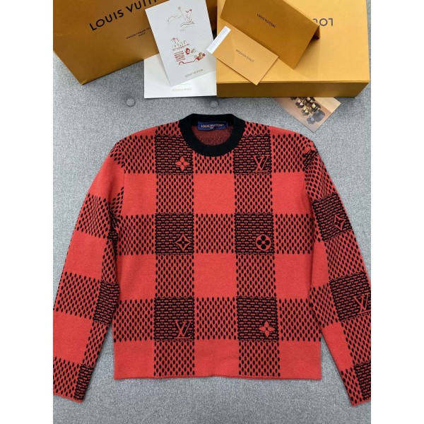 LV 레드 체크 울 스웨터 시중에 나와있는 컬러와 소재가 많이 차이남 레드 컬러는 흔한 레드 컬러가 아닌 정품 레드 컬러는 오렌지 톤의 레드 컬러 저희는 실을 뽑고 염색을 해서 제작 원료는 100% 울 모조품 조방 스웨이드가 풍부하고 풍성하며 도톰한 느낌을 주며 가을 겨울 스타일링, 포인트 컬러의 꽃무늬