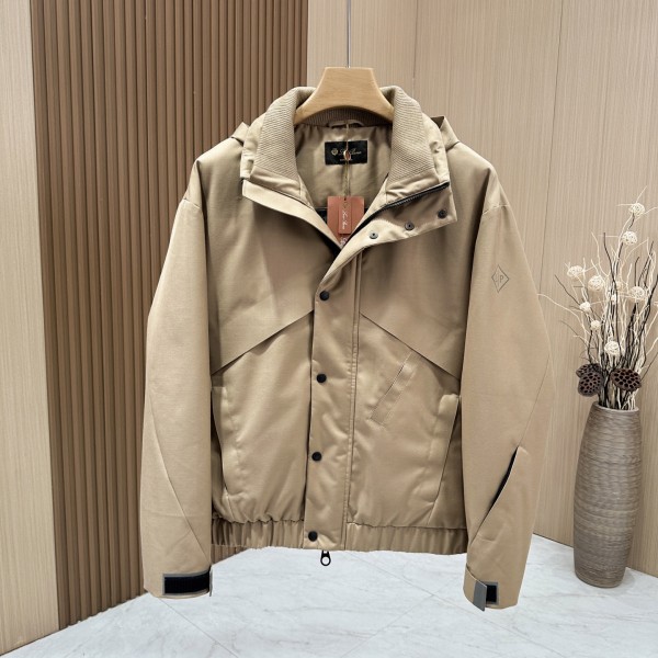 Loro Piana 시즌 신제품 바람막이 패딩 모두 세 겹의 Bristol 기술 소재로 재구성되었으며 이 원단은 물 뿌림 방지 및 방풍 특성을 가지고 있고 Clima System 기술로 처리되어 우수한 열 조절 성능이 있음 특색 있는 원단인 극세사 캐시미어 혼방 후 방수 방풍 처리 바람막이 재킷과 다운의 완벽한 조화를 이루며 영국식 귀족의 깔끔한 느낌은 재단 과정을 통해 완벽하게 드러남 바람막이는 약간 비스듬한 테두리 포켓 소매 끝에는 니트 안감을, 내부에는 가로형 바람막이 테두리 포켓 다운 충전량이 가득하여 따뜻함과 편안함을 보장하면서도 무겁지 않은 절제되고 럭셔리함